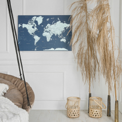 XL 150×100 cm – 199 €, L 120×80 cm – 159 €, M 100×700 cm – 119 €. MEDŽIAGOS Žemėlapis išliks ryškus ir puikios išvaizdos daugybę metų, nes jam pagaminti naudojamos aukščiausios kokybės medžiagos. Išspausdintas vaizdas yra padengiamas vandens pagrindo rūgščių neturinčiu apsauginiu laku, kuris atitinka muziejuose saugomų eksponatų reikalavimus - iki 80-100 metų spalvos išlieka nepakitusios. Kiekvienas žemėlapis yra kruopščiai pagamintas Lietuvoje profesionalių MyPoint meistrų. Smulkios tekstūros ir tvirta 310g/m² drobė Coala,Aukštos raiškos Mutoh spausdintuvas, užtikrinantis aiškų skaitomumą (Japonija),Originalūs ir ilgaamžiai dažai, suteikiantys ryškias spalvas (Japonija),Nuo blukimo ir neigiamo aplinkos poveikio apsaugantis matinis spaudos lakas (Jungtinė Karalystė);Tvirtas natūralaus medžio porėmis užpildytas su putų plokšte – lengvai konstrukcijai ir patogiam smeigtukų naudojimui (Lietuva).