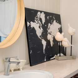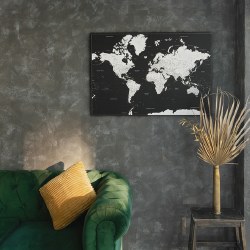 XL 150×100 cm – 199 €, L 120×80 cm – 159 €, M 100×700 cm – 119 €. MEDŽIAGOS Žemėlapis išliks ryškus ir puikios išvaizdos daugybę metų, nes jam pagaminti naudojamos aukščiausios kokybės medžiagos. Išspausdintas vaizdas yra padengiamas vandens pagrindo rūgščių neturinčiu apsauginiu laku, kuris atitinka muziejuose saugomų eksponatų reikalavimus - iki 80-100 metų spalvos išlieka nepakitusios. Kiekvienas žemėlapis yra kruopščiai pagamintas Lietuvoje profesionalių MyPoint meistrų. Smulkios tekstūros ir tvirta 310g/m² drobė Coala,Aukštos raiškos Mutoh spausdintuvas, užtikrinantis aiškų skaitomumą (Japonija),Originalūs ir ilgaamžiai dažai, suteikiantys ryškias spalvas (Japonija),Nuo blukimo ir neigiamo aplinkos poveikio apsaugantis matinis spaudos lakas (Jungtinė Karalystė);Tvirtas natūralaus medžio porėmis užpildytas su putų plokšte – lengvai konstrukcijai ir patogiam smeigtukų naudojimui (Lietuva).
