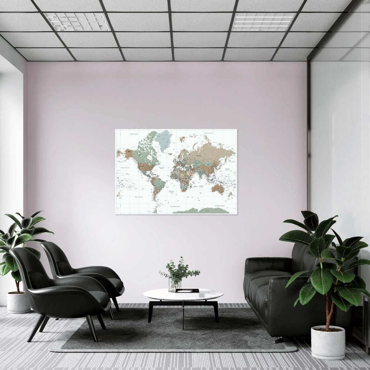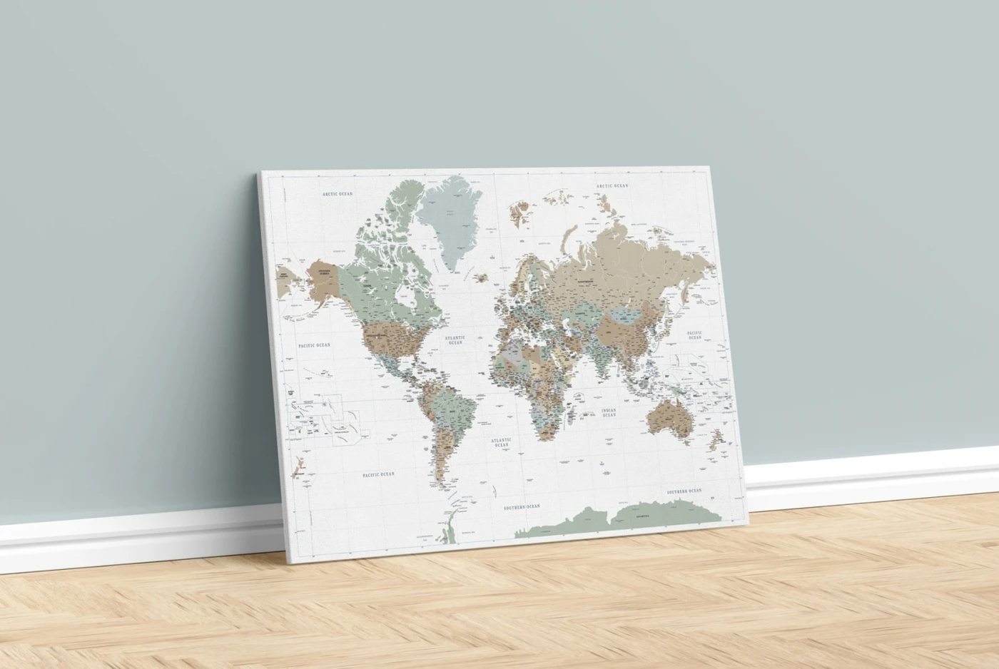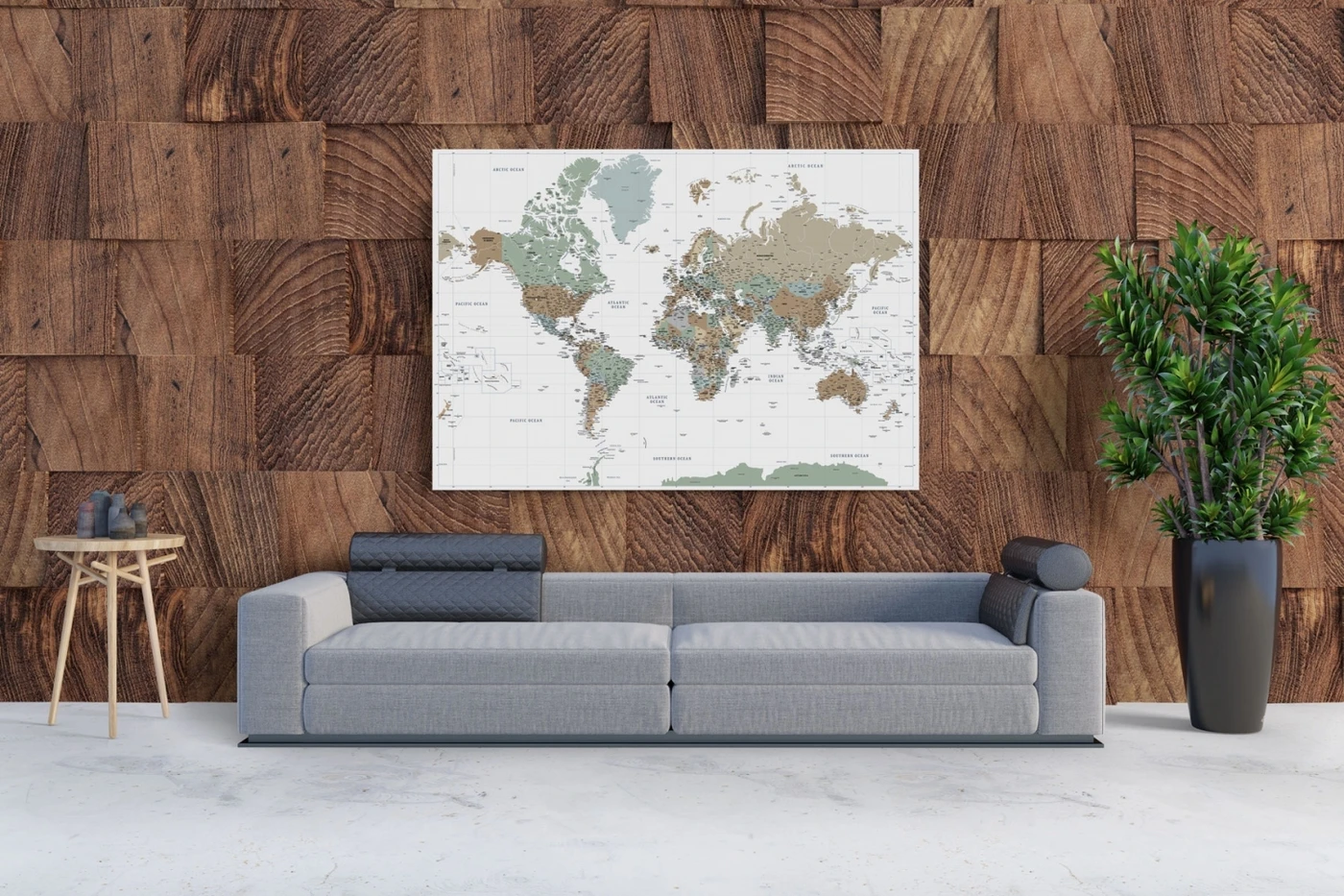 XL 150×100 cm – 199 €, L 120×80 cm – 159 €, M 100×700 cm – 119 €. MEDŽIAGOS Žemėlapis išliks ryškus ir puikios išvaizdos daugybę metų, nes jam pagaminti naudojamos aukščiausios kokybės medžiagos. Išspausdintas vaizdas yra padengiamas vandens pagrindo rūgščių neturinčiu apsauginiu laku, kuris atitinka muziejuose saugomų eksponatų reikalavimus - iki 80-100 metų spalvos išlieka nepakitusios. Kiekvienas žemėlapis yra kruopščiai pagamintas Lietuvoje profesionalių MyPoint meistrų. Smulkios tekstūros ir tvirta 310g/m² drobė Coala,Aukštos raiškos Mutoh spausdintuvas, užtikrinantis aiškų skaitomumą (Japonija),Originalūs ir ilgaamžiai dažai, suteikiantys ryškias spalvas (Japonija),Nuo blukimo ir neigiamo aplinkos poveikio apsaugantis matinis spaudos lakas (Jungtinė Karalystė);Tvirtas natūralaus medžio porėmis užpildytas su putų plokšte – lengvai konstrukcijai ir patogiam smeigtukų naudojimui (Lietuva).