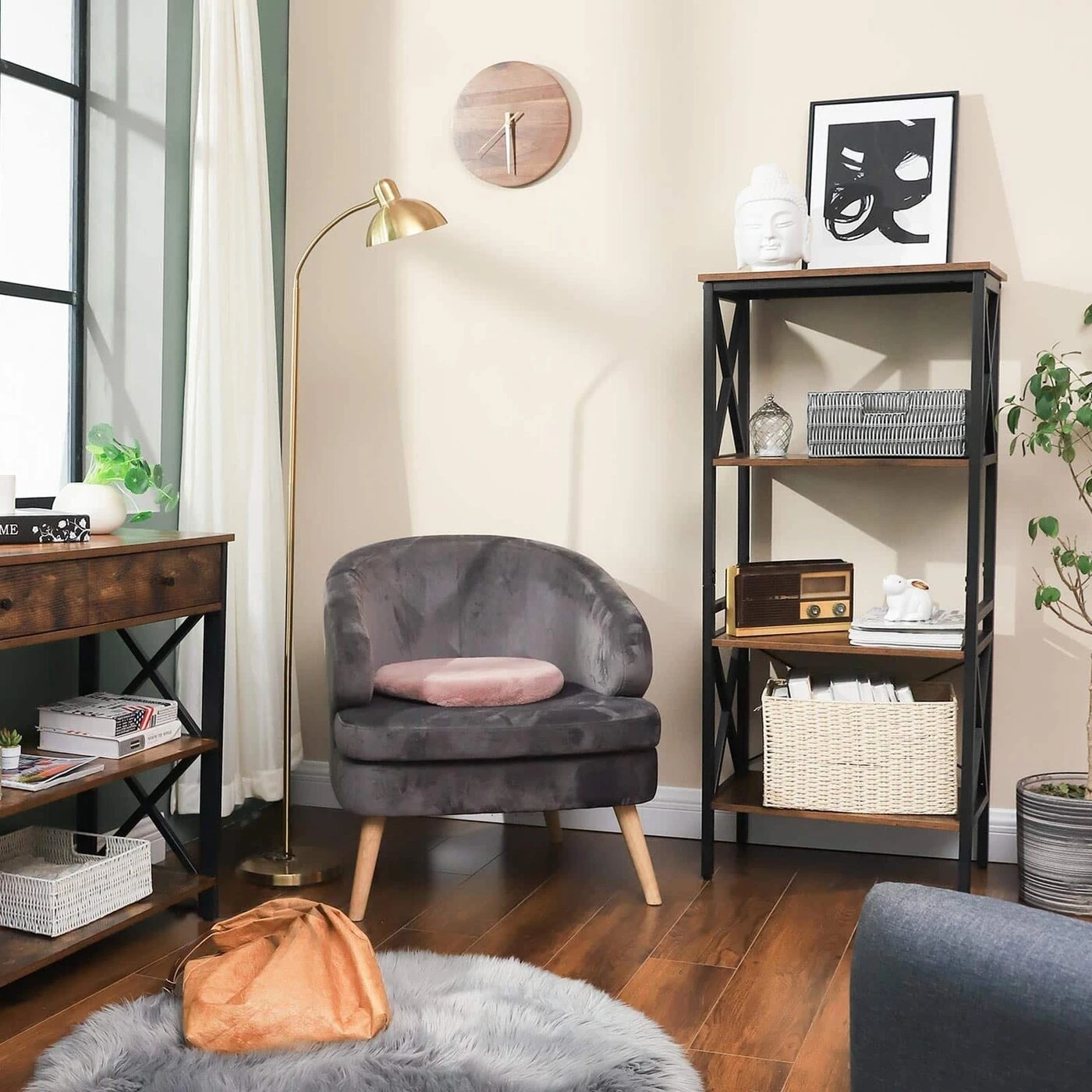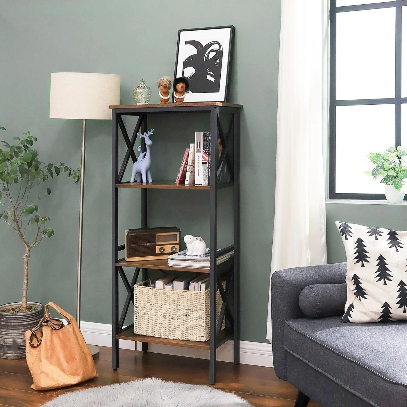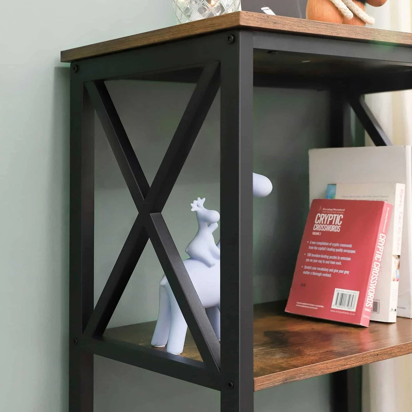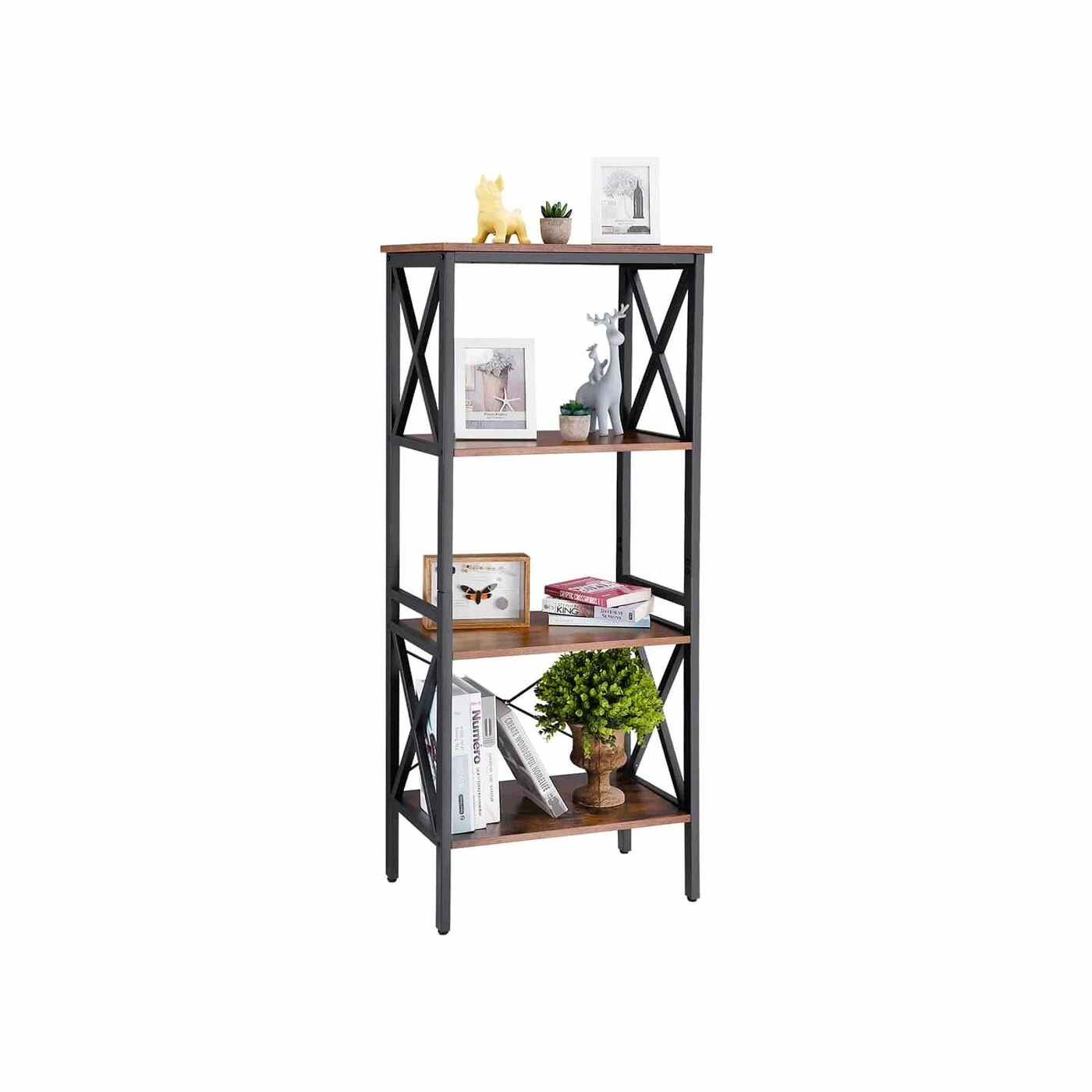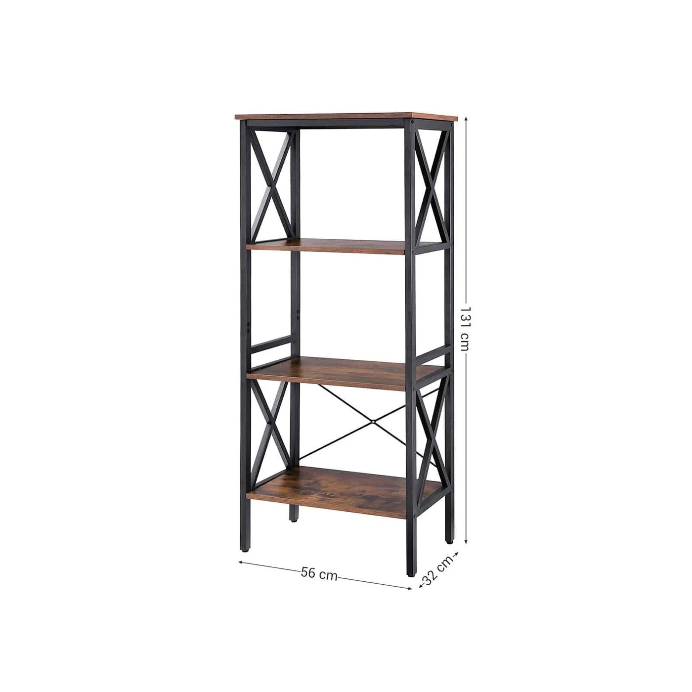 Aprašymas buvo automatiškai išverstas, gali pasitaikyti klaidų.Išsami informacija apie gaminį: - Spalva: vintažinė ruda-juoda - Medžiaga: medžio drožlių plokštės, metalas - Dydis: 56 x 34 x 131 cm (P x P x A)Pakuotės turinys: - 1 x laikymo lentyna - 1 x priedų pakuotė - 1 x instrukcijos