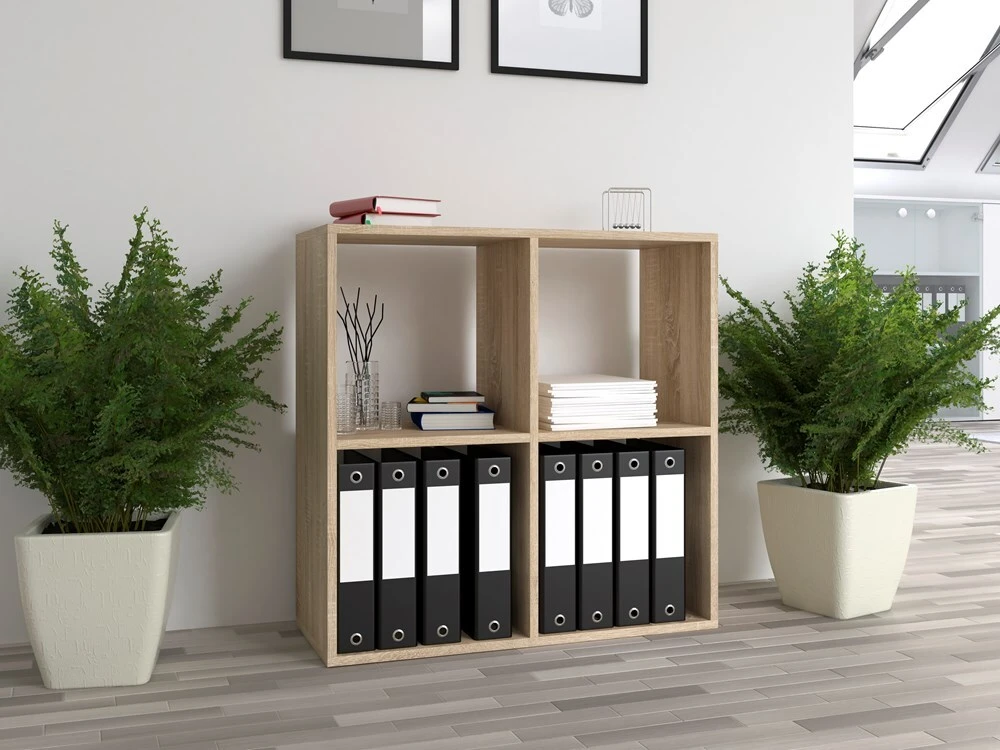 Lentyna, kuri lengvai ras vietą jūsų biure ar namuose. Ši lentyna tiks tiek mažoms, tiek erdvioms patalpoms;abi pusės su apdaila, todėl prie sienos galima statyti taip, kaip norite;puikiai tinka gražiam kanceliarinių prekių, namų apyvokos daiktų, kitų smulkių dizaino elementų ar knygų laikymui;pagaminta iš laminuotos medžio drožlių plokštės (MDP), briaunos dailintos PVC danga;spalva - ąžuolo (sonoma);išmatavimai: aukštis - 75 cm, ilgis - 74 cm, gylis - 30 cm;