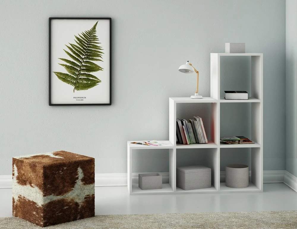 laiptuota lentyna lengvai ras vietą jūsų biure ar namuose. Ši lentyna tiks tiek mažoms, tiek erdvioms patalpoms;abi pusės su apdaila, todėl prie sienos galima statyti taip, kaip norite;puikiai tinka gražiam kanceliarinių prekių, namų apyvokos daiktų, kitų smulkių dizaino elementų ar knygų laikymui;pagaminta iš laminuotos medžio drožlių plokštės (MDP), briaunos dailintos PVC danga;spalva - balta;išmatavimai: aukštis - 115 cm, plotis - 115 cm, gylis - 30 cm;lentynos pakopos matmenys: ilgis - 36 cm, plotis - 36 cm;