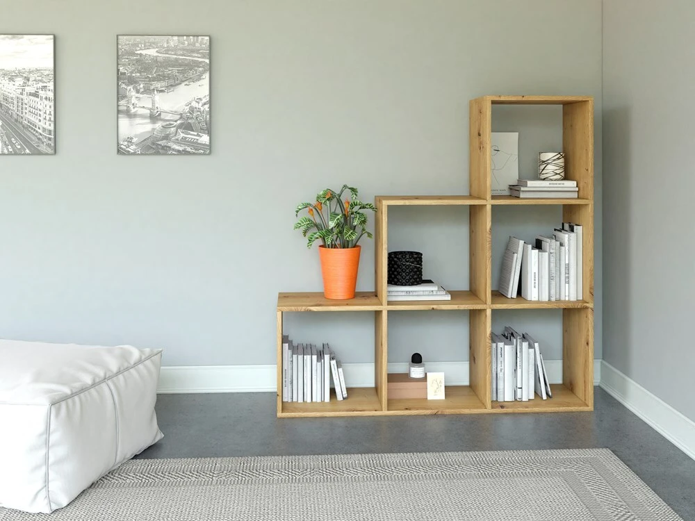 laiptuota lentyna lengvai ras vietą jūsų biure ar namuose. Ši lentyna tiks tiek mažoms, tiek erdvioms patalpoms;abi pusės su apdaila, todėl prie sienos galima statyti taip, kaip norite;puikiai tinka gražiam kanceliarinių prekių, namų apyvokos daiktų, kitų smulkių dizaino elementų ar knygų laikymui;pagaminta iš laminuotos medžio drožlių plokštės (MDP), briaunos dailintos PVC danga;spalva - ruda (artisan oak);išmatavimai: aukštis - 115 cm, plotis - 115 cm, gylis - 30 cm;lentynos pakopos matmenys: ilgis - 36 cm, plotis - 36 cm;