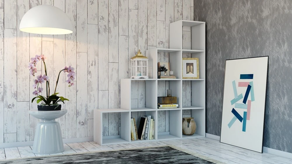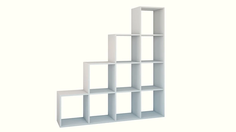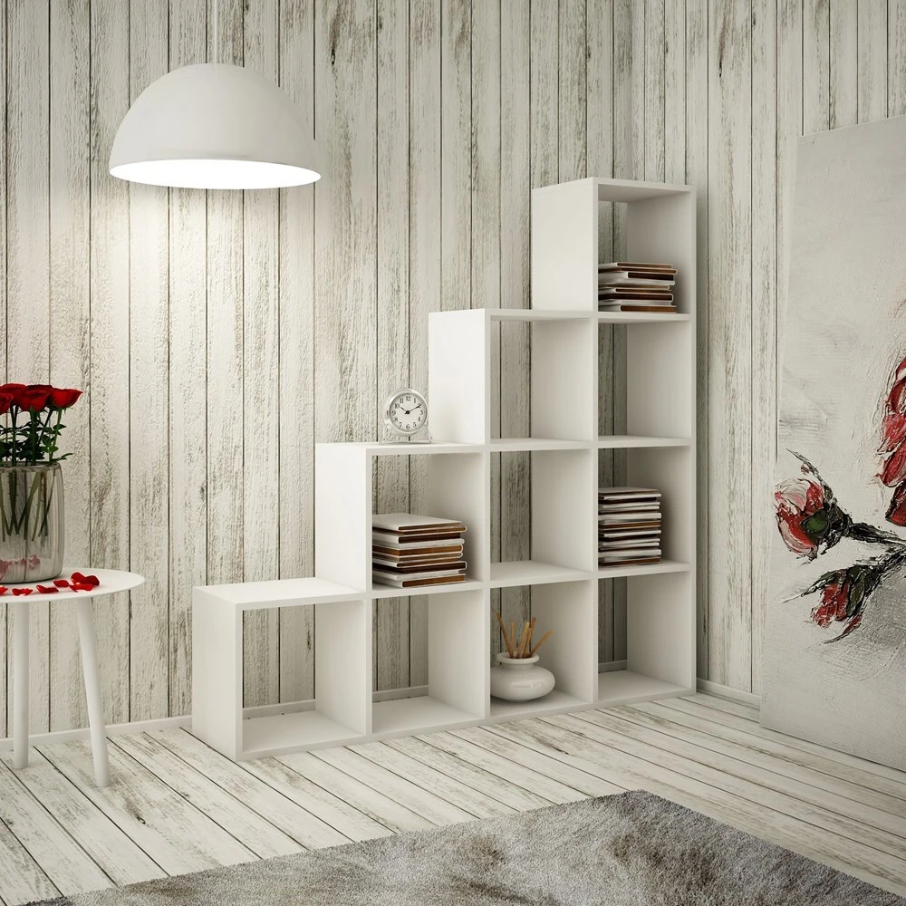 laiptuota lentyna lengvai ras vietą jūsų biure ar namuose. Ši lentyna tiks tiek mažoms, tiek erdvioms patalpoms;abi pusės su apdaila, todėl prie sienos galima statyti taip, kaip norite;puikiai tinka gražiam kanceliarinių prekių, namų apyvokos daiktų, kitų smulkių dizaino elementų ar knygų laikymui;pagaminta iš laminuotos medžio drožlių plokštės (MDP), briaunos dailintos PVC danga;spalva - balta;išmatavimai: aukštis - 153 cm, ilgis - 153 cm, gylis - 30 cm;10 lentynų pakopų; pakopos matmenys: ilgis - 36 cm, plotis - 36 cm;
