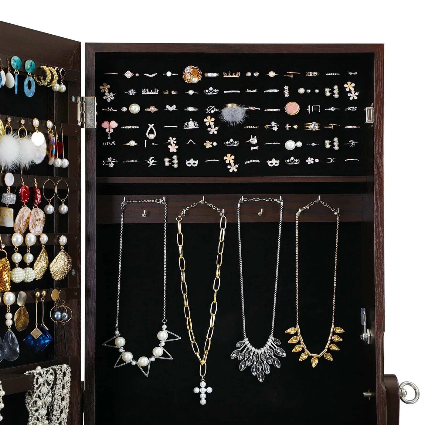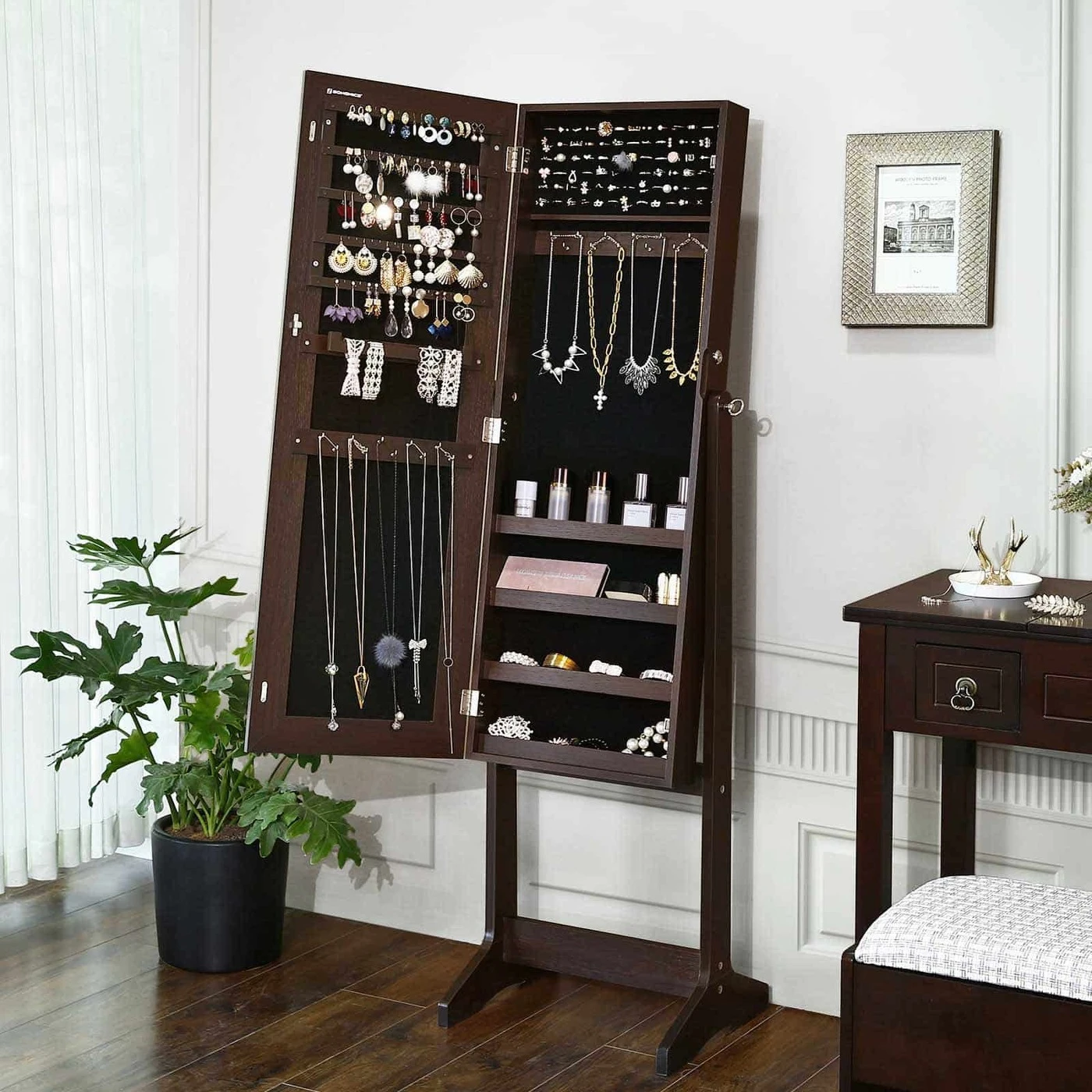 Aprašymas buvo automatiškai išverstas, gali pasitaikyti klaidų.Jūsų nauja raudona suknelė priglunda kaip pirštinė, avite aukštakulnius ir grožitės savo apranga dideliame šios akį traukiančios papuošalų spintelės veidrodyje. Stop! Kažko vis dar trūksta! Derantys auskarai ir blizgantis vėrinys užbaigia jūsų stilių. Laimei, jums nereikia ilgai ieškoti tinkamų papuošalų, nes jie tvarkingai išrikiuoti už veidrodinės spintelės durelių 6 auskarų lizdai (iš viso 30)6 eilės po 13 lizdų žiedams (iš viso 78)2 x 12 kabliukų karoliui ir pan. (iš viso 24) 4 reguliuojami pakreipimo kampai RakinamiIšsami informacija apie gaminį: Spalva: ruda Medžiaga: MDF (vidutinio tankio medienos plaušų plokštė) Bendras dydis: 41,1 x 36,5 x 151,5 cm (I x P x A) Spintelės korpuso dydis: 37,2 x 9,5 x 108,3 cm (P x P x A) Svoris: 11,3 kg Pristatymo apimtis: 1 x papuošalų spintelė 1 x talpykla su priedais 1 x instrukcijos (DE, EN, FR, ES, IT) SONGMICS Pastabos: Surinkdami šį gaminį nuotolinio valdymo pulte, saugokite vaikus nuo visų priedų ir pakuotės dalių. Nurijus ar įkvėpus, gali kilti gyvybei pavojingų situacijų.