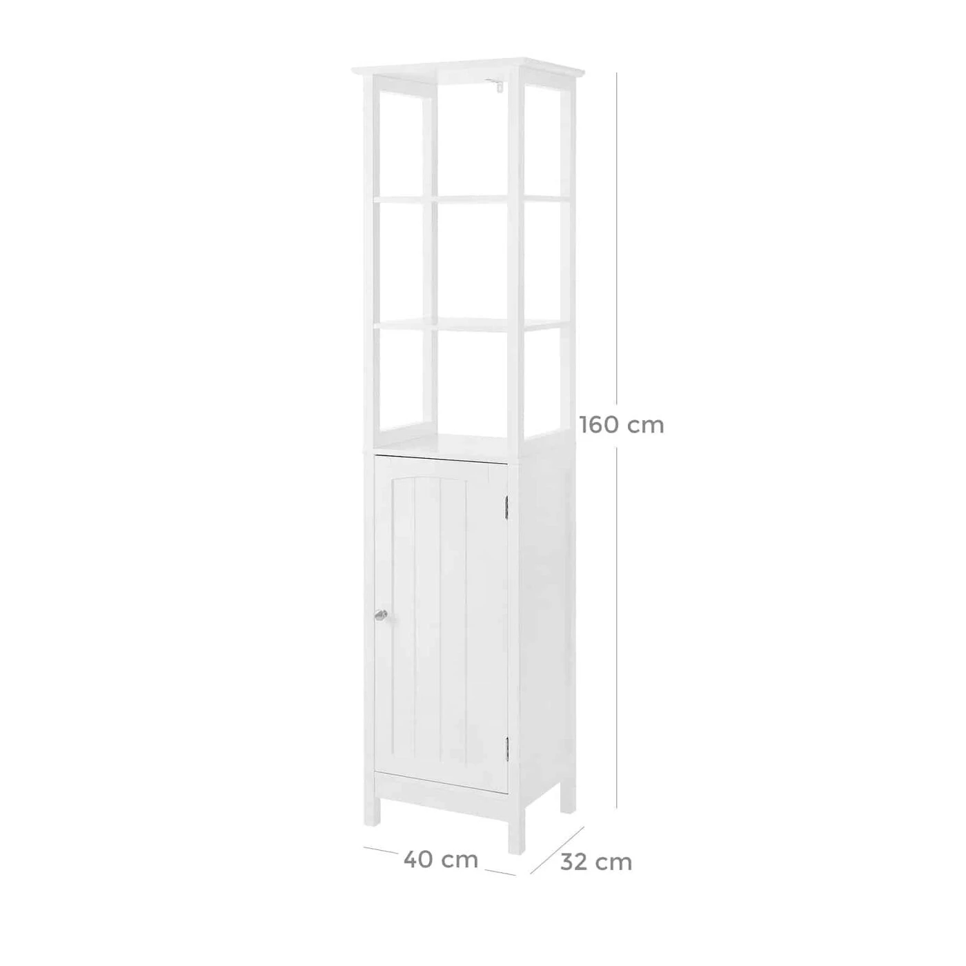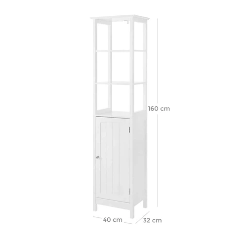 Aprašymas buvo automatiškai išverstas, gali pasitaikyti klaidų.Ar jus nuolat erzina chaosas vonios kambaryje, svetainėje, koridoriuje ar virtuvėje? Tada ši aukšta VASAGLE spintelė yra tai, ko jums reikia. Šio papuošalo pagalba jūsų pyktis tikrai išnyks. Dekoratyvinis elementas jūsų namams Dėl balto lako apdailos ši kaimiško stiliaus spintelė atrodo elegantiškai ir žaviai. Taigi jis tarnauja ne tik kaip baldas, bet ir kaip stilingas puošybos elementas. Sudėtingas dizainas Spintos durelės, kurias galima pasukti 180° kampu, turi chromuotą metalinę rankeną, todėl jas ypač lengva atidaryti. Spintelės lentyną taip pat galima reguliuoti 3 skirtingais aukščiais, kad prireikus pritaikytumėte įvairiausių gaminių dydžiui ir optimaliai apsaugotumėte nuo dulkių ir vandens. 3 atviruose skyriuose taip pat yra vietos kitoms higienos reikmenims, rankšluosčiams, makiažui, daiktadėžėms ir daugeliui kitų vonios reikmenų.Informacija apie gaminį: - Spalva: balta - Medžiaga: MDF (vidutinio tankio medienos plaušų plokštė) - Matmenys: 40 x 32 x 160 (P x P x A) - Svoris: 15,9 kg Pristatymo komplektas: - 1 x aukšta spintelė - 1 x priedas krepšys – 1 x instrukcijos (DE, EN, IT, FR, ES)