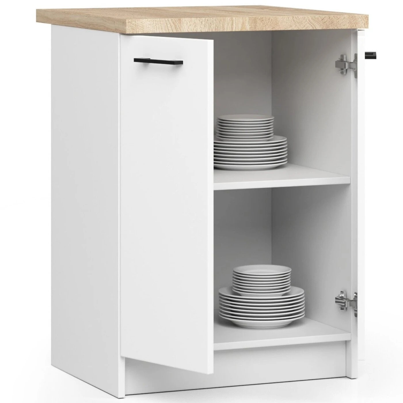 Aprašymas buvo automatiškai išverstas, gali pasitaikyti klaidų. Oliwia virtuvės spintelė – tai aukščiausios kokybės gaminys, pasižymintis universalia ir nesenstančia išvaizda. Baltas fasadas kartu su sonoma ąžuolo stalviršiu puikiai tiks moderniai, bet ir klasikinio stiliaus virtuvei. Juodos, matinės rankenos garantuoja ilgą ir be rūpesčių naudojimą. Baldai turi erdvią įdubą, taip pat lentyną, kurios dėka juose yra daug vietos įvairių tipų virtuvės reikmenims, valymo priemonėms ir maistui. Patvarus pasiūlymas iš laminuotos plokštės yra mūsų parduotuvėje už palankią kainą. Tai praktinio naudojimo, paprastumo ir elegancijos derinys, kuris visada apsigins – nepaisant besikeičiančių tendencijų. Spintelė puikiai derinama su kita šios kolekcijos dalimi paruošta virtuvės įranga Prie perkamos spintos pridedamas spintelei skirtas stalviršis. Viršutinė dalis pagaminta iš laminuotos plokštės, jos matmenys 60cm / 60cm