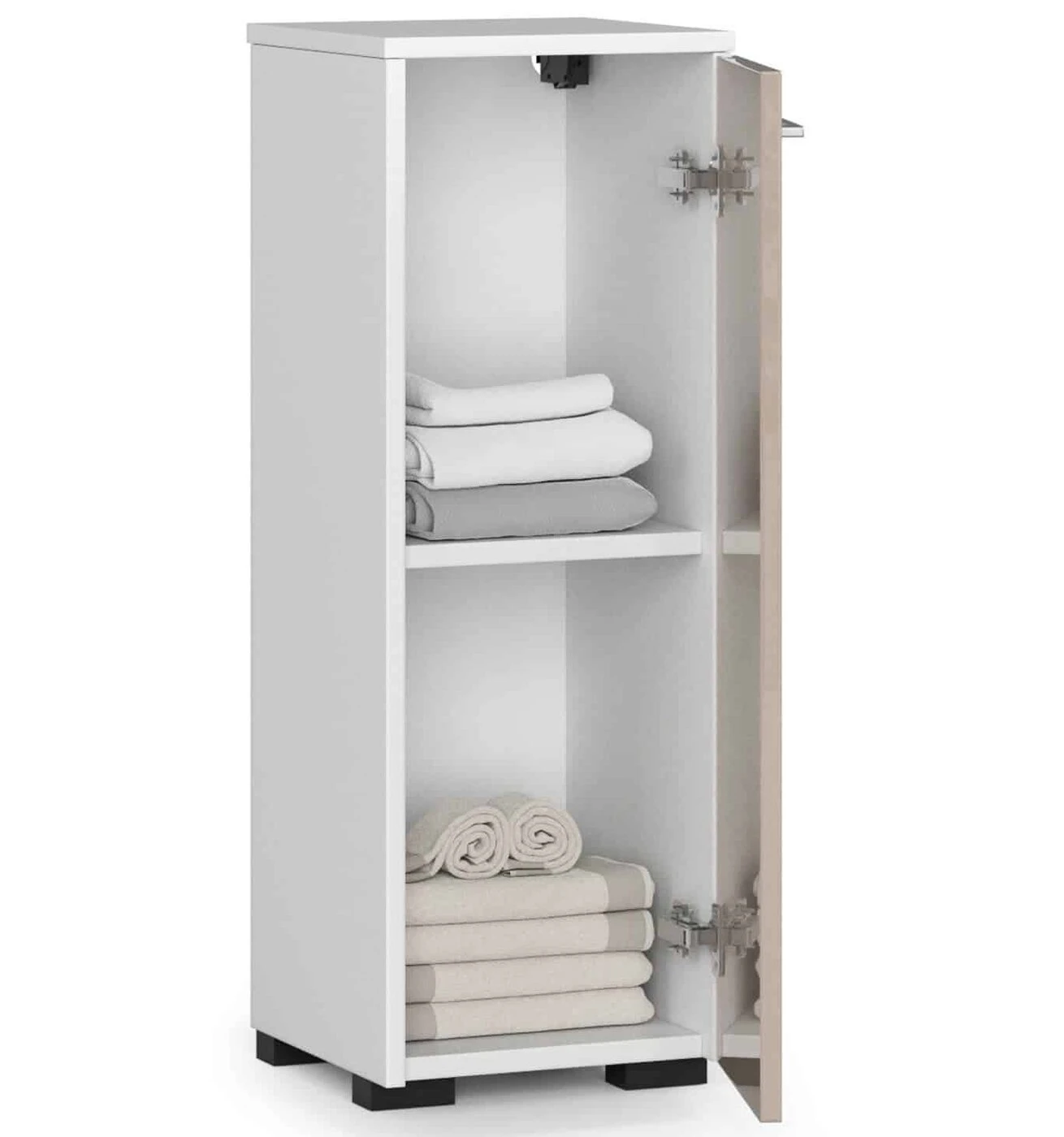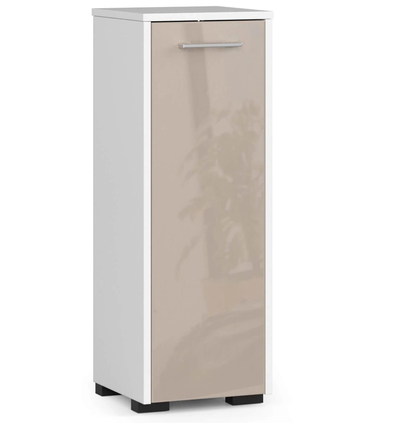 Aprašymas buvo automatiškai išverstas, gali pasitaikyti klaidų.Pastaraisiais sezonais itin madingas nemirtingos baltos spalvos derinys su šiltu smėlio atspalviu leido sukurti itin estetišką ir praktišką baldą, derantį prie daugelio vonios kambario įrengimų. Spintelę sudaro dvi lentynos, pastatytos už uždarų durų. Kasdienio naudojimo patogumas, taip pat naudojamų medžiagų ilgaamžiškumas ir tvirtumas daro pasiūlymą labai populiariu ir noriai naudojamu tiek erdviuose, tiek mažuose kambariuose. Pažymėtina kruopštus pristatytų baldų apdirbimas ir tvirta konstrukcija. - Spintelė pagaminta iš dilimui atsparios laminuotos plokštės; - Viduje yra dvi lentynos durys ; - Durys universalios - galima montuoti iš dešinės ir kairės pusės; - Kraštai padengti melaminu; - durų rankenos yra sidabrinės; - Spintelė skirta montuoti savarankiškai ir pridedama instrukcija; - Gaminio garantija yra dvidešimt keturi mėnesiai.