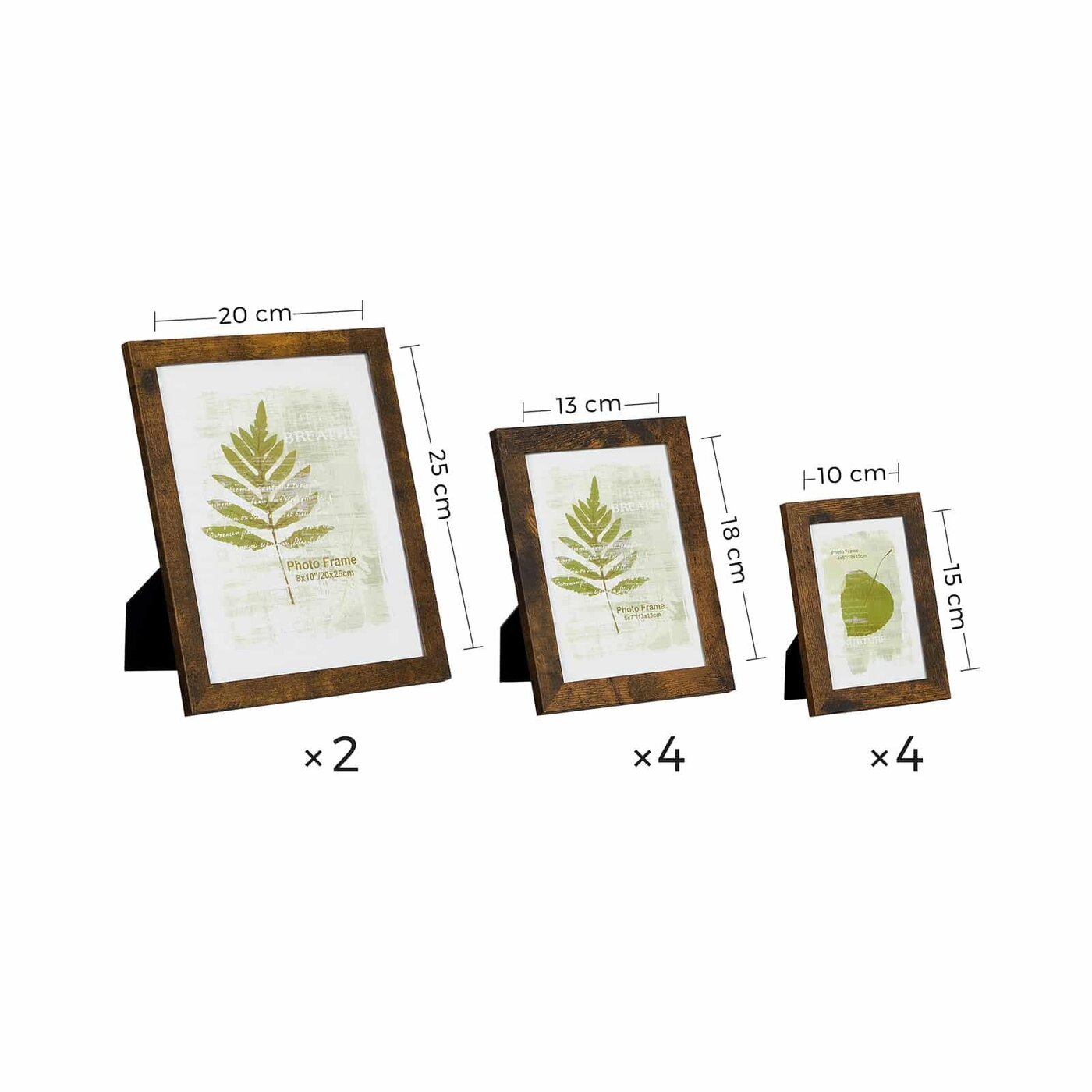 Aprašymas buvo automatiškai išverstas, gali pasitaikyti klaidų.Ar visada norite matyti mielas savo vaikų šypsenas, dalintis linksmiausiomis akimirkomis su kitais ar eksponuoti meno kūrinį? Šie SONGMICS paveikslų rėmeliai apsaugo jūsų asmenukes, meno kūrinius ar nuotraukas ir tuo pačiu nepakartojamai pabrėžia juos.Individualumas ir rafinuotumas: Ant sienų pakabinkite kvapą gniaužiančius peizažus ar išraiškingus portretus ir suteiksite namams individualumo. Vintažinis rudas šių rėmelių atspalvis stebuklingai pritraukia žvilgsnį ir nukreipia jas į gražiausias nuotraukas. Šių paveikslų rėmelių akcentai: Rėmeliai pristatomi iš anksto surinkti; Montuoti nereikia.Tinka dviem 20 x 25 cm, keturioms 13 x 18 cm ir keturioms 10 x 15 cm nuotraukomsGalima kabinti horizontaliai arba vertikaliaiTinka portretinėms ar panoraminėms nuotraukoms stovėti Modernūs rėmeliai, suteikiantys namams charakterioPlastikiniai stiklai be aštrių kraštųPuiki dovana jūsų brangiausiemsIšsami informacija apie gaminį: Spalva: vintažinė ruda Medžiaga: MDF (vidutinio tankio medienos plaušų plokštė), PS plastikas Dydis: 23,1 x 1,2 x 28,7 cm (I x P x A) 16 x 1,2 x 21 cm (P x P x A) 13,5 x 1,2 x 18,5 cm (P x P x A) Tinkami nuotraukų dydžiai: 20 x 25 cm, 13 x 18 cm, 10 x 15 cm. Realiai matomas: 19,5 x 24,5 cm, 12 x 17 cm, 9,5 x 14,5 cm Bendras pristatymo svoris: 2,9 kg :10 x SONGMICS paveikslų rėmeliai Pastabos: visi plastikinės plokštės kraštai yra šlifuoti, kad būtų užtikrintas jūsų saugumas keičiant paveikslėlius. Nepaisant to, vaikai turi būti toliau nuo šio gaminio. Įsitikinkite, kad rėmai tvirtai pritvirtinti prie sienos.