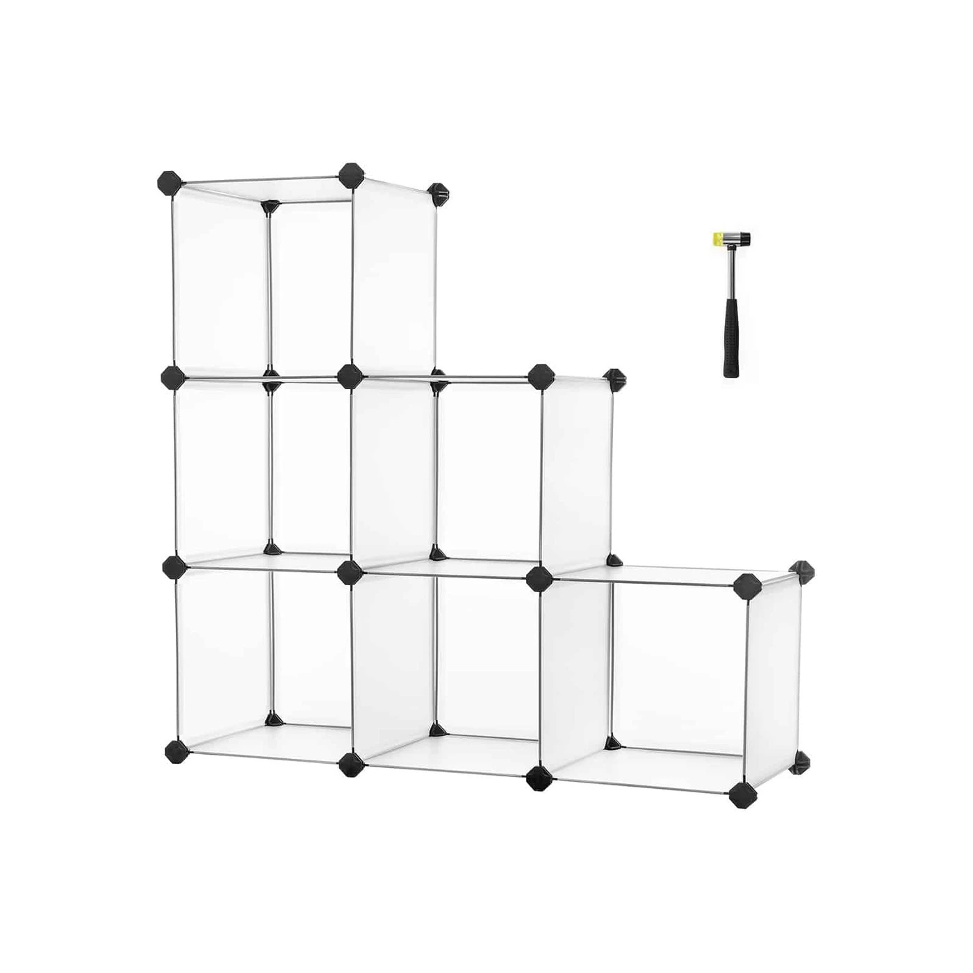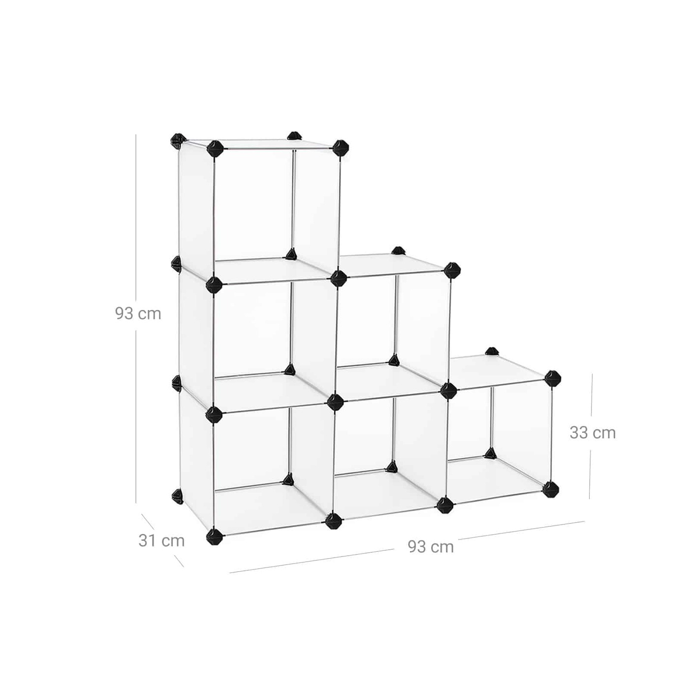 Aprašymas buvo automatiškai išverstas, gali pasitaikyti klaidų.Songmics stovinčioje lentynoje idealiai dera lengvumas ir stabilumas. Surinkimas pagrįstas tam tikra sudėtinga prijungimo sistema, grafinės surinkimo instrukcijos žingsnis po žingsnio veda prie praktiško vietos taupymo. Jei reikia, lentyną galima nesunkiai išmontuoti, kad būtų taupoma vieta sandėliavimui ar transportavimui. Nesvarbu, ar ieškote sandėliavimo lentynos biure, ar tiesiog reikia sandėliavimo vietos koridoriuje – su savo lanksčia sistema Songmics siūlo tinkamą sprendimą visoms šioms užduotims!Išsami informacija apie gaminį: Matmenys: 93 x 93 x 31 cm (P x A x G) Medžiaga: PP plastikas (plokštelė) + ABS plastikas (jungtis) Spalva: pusiau permatoma balta Maks. Kiekvieno skyriaus apkrova: 10 kg Pristatymo komplektas: 24 x PP plokštė (30 x 30 cm; pusiau permatoma balta) 26 x plastikinė jungtis (juoda) 1 x medinis plaktukas 1 x instrukcijos (DE, EN, FR, IT, ES) 1 x apsaugos nuo apvirtimo (2 rinkiniai varžtų, kaiščių ir nailoninių dirželių) Pastabos: Kadangi lentyna daugiausia pagaminta iš PP plastiko, venkite spaudimo aukštu slėgiu, smūgių su didele jėga arba neleiskite, kad lentyna liestųsi su aštrūs daiktai. Be to, būkite atsargūs ir nesėdėkite ant lentynos. Laikykite jį atokiai nuo užsiliepsnojimo šaltinių ar atviros ugnies.- Tvirtindami jungiamąsias detales, atkreipkite dėmesį, kad visi apvalūs paviršiai su ""Songmics"" logotipu turi būti nukreipti į išorę.- Tvirtindami plokštes atkreipkite dėmesį, kad įdubę kampų plokštės įkišamos į jungiamųjų detalių plyšius spaudžiant iki galo. Norėdami tai padaryti, visada turėtumėte paspausti kiekvieną jungiamąją dalį, kai pastatysite lygį, kol dalys bus ""apačioje"" ir užsifiksuos. Būtinai atkreipkite dėmesį į tvirtinimo tikslumą, antraip lentyna atrodys iškreipta.Plokštelės susideda iš metalinio rėmelio, kuris yra padengtas stabilia plastikine plėvele, uždedamas per kraštus ir suvirinamas. Į vidų nerekomenduojama dėti knygų, hantelių ar kitų sunkių daiktų.