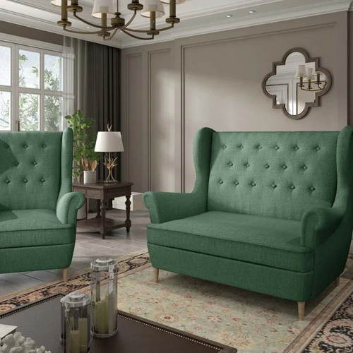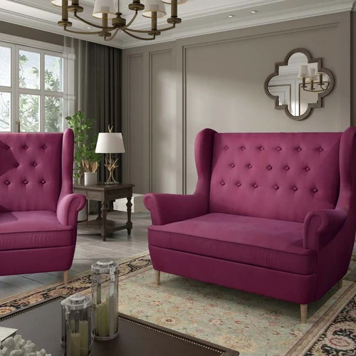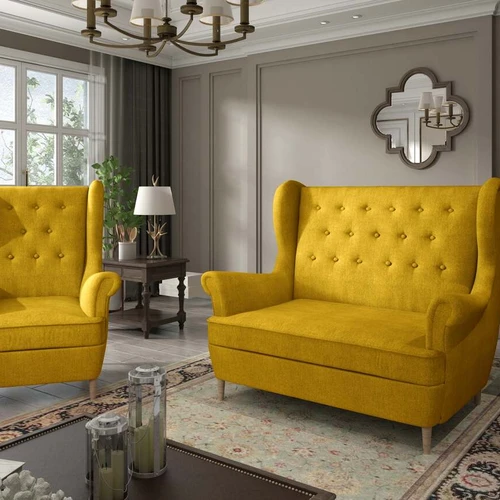 Poilsio komplektas EL5205 yra gero stiliaus ir maksimalaus komforto esmė. Toks komplektas tikrai pagyvins bet kokį, net ir į akis krentantį interjerą. Visa tai yra dėl atskirų mūsų rinkinio elementų. Skoningas ir prašmatnus fotelis sujungia originalų dizainą su išskirtiniu poilsio komfortu. Fotelis, kaip ir EL5205 sofa, yra uszak tipo baldai, o tai reiškia, kad jų charakteristikos yra: erdvi sėdynė, aukšti porankiai ir išskirtinės apdailos atlošas. Pristatydami mūsų baldus, negalima nepaminėti aukštos darbo kokybės ir dailios, tikslios dekoracijos. Fotelis yra baldas, kurio matmenys 85 x 90 x 103 cm, o sofa - 150 x 90 x 103 cm. Aukštam mūsų komplekto funkcionalumui įtakos turi ir sėdynių užpildymo tipas. Dėl patvarios gofruotos spyruoklės sujungimo su minkštomis, lanksčiomis T30 putomis šis pasirinkimas tampa hitu! Sėdynės yra tinkamai profiliuotos, o mūsų kūnas yra tinkamai apsaugotas naudojimo metu. EL5205 komplektas – tai baldas, kuris dėl savo išvaizdos ir patogumo puikiai pademonstruos interjerą, kuriame bus įrengtas. Tiek foteliai, tiek sofa sukuria tobulą komplektą.