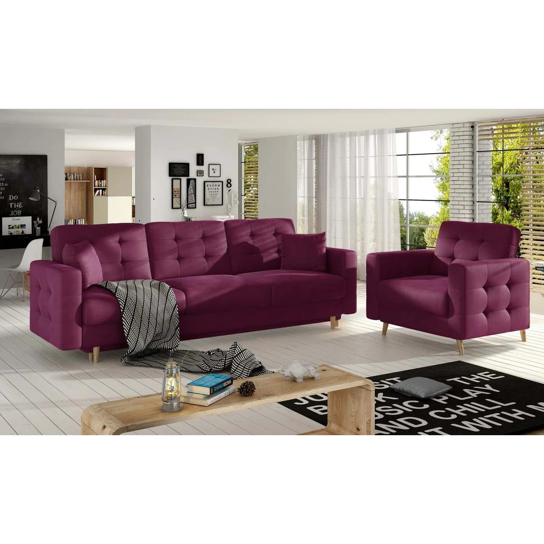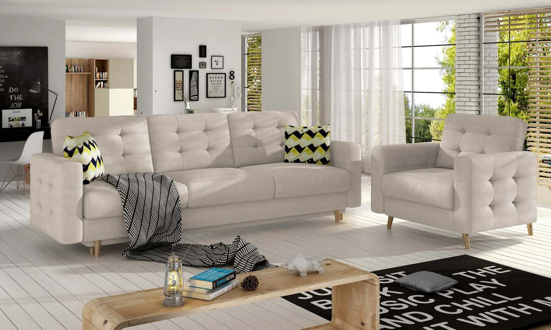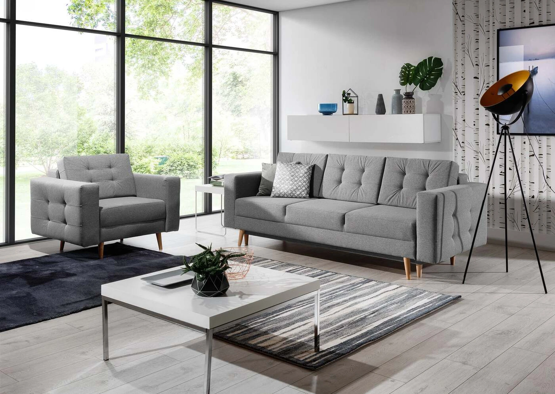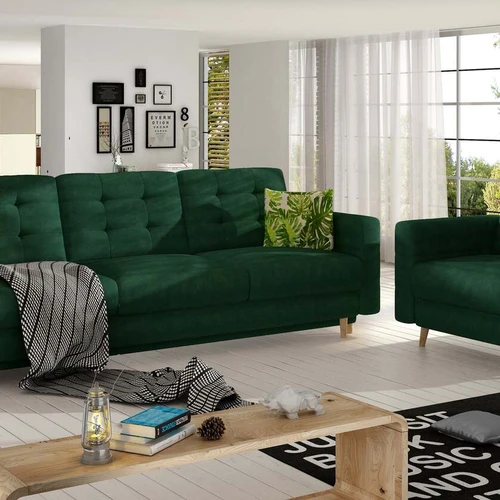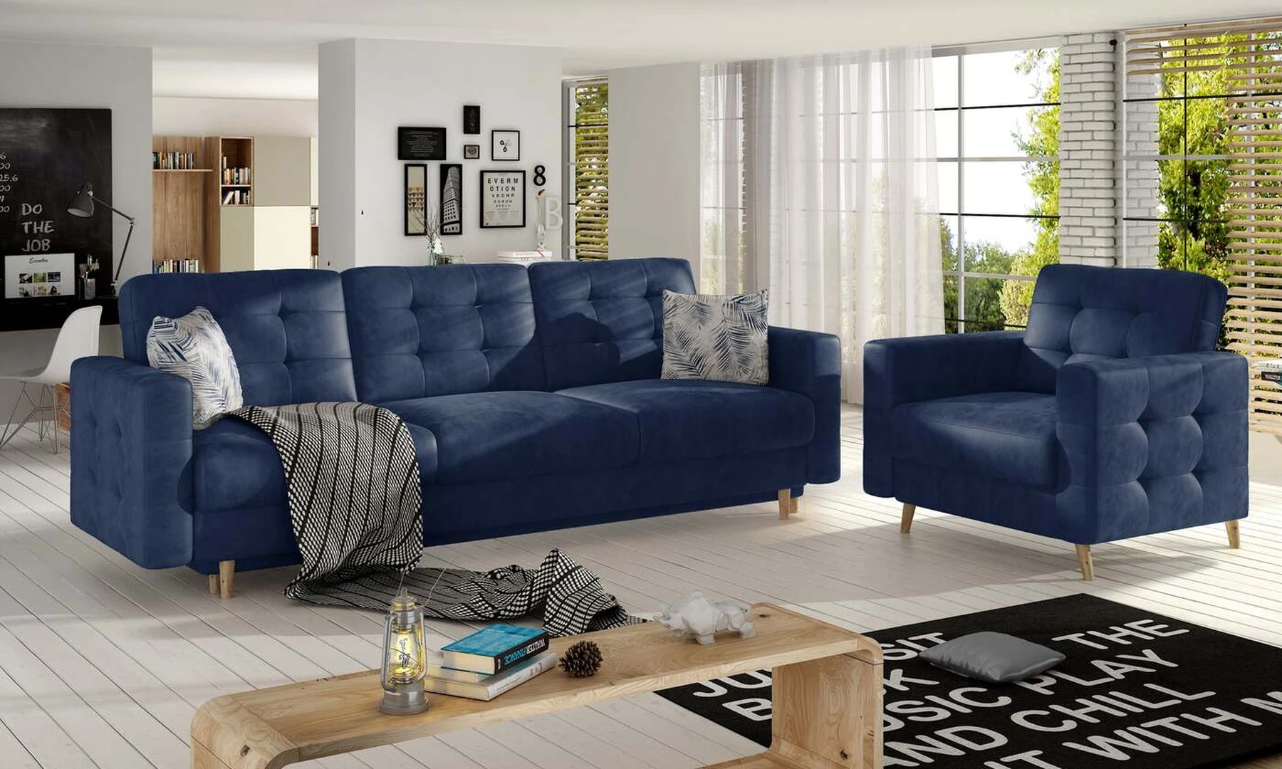 Sofos komplektas EL9257 yra puikus sprendimas tiems, kurie svajoja apie stilingą, elegantišką interjerą. Be abejo, šio fotelio ir šios sofos pasirinkimas bus tikras malonumas gražiai sutvarkyto interjero mėgėjams. Individualūs baldai yra klasikinio, tačiau modernaus dizaino. Per dekoratyvinę skiautinę – jos praturtins bet kurį įprastą namų kampelį. Kalbant apie 107 x 92 x 86 cm fotelį - jis turi gilią, lygią sėdynę, kontūruotą atlošą, erdvią pagalvėlę, taip pat daugybę spalvų variacijų. Korpusas niekuo nesiskiria ir 235 x 95 x 86 cm sofos, kuri skirta ir dienos, ir nakties poilsiui – vėliau ji transformuojasi į 133 x 196 cm lovą (šiame modelyje taip pat yra talpi patalynės dėžė). Dėl gofruotos spyruoklės ir T25 putplasčio naudojimo sofos ir fotelio sėdynė yra itin lanksti, minkšta ir atspari bet kokiai deformacijai. Paprasta forma, elegantiška apdaila ir saugi konstrukcija – tai išskirtiniai mūsų EL9257 sofos baldų bruožai. Tokią sofą verta turėti savo bute, kad džiaugtumėtės išskirtiniu komfortu ir stiliumi. Ramia sąžine rekomenduojame mūsų EL9257 baldus. Toks pasirinkimas niekada nenuvilia!