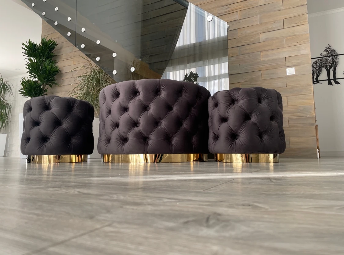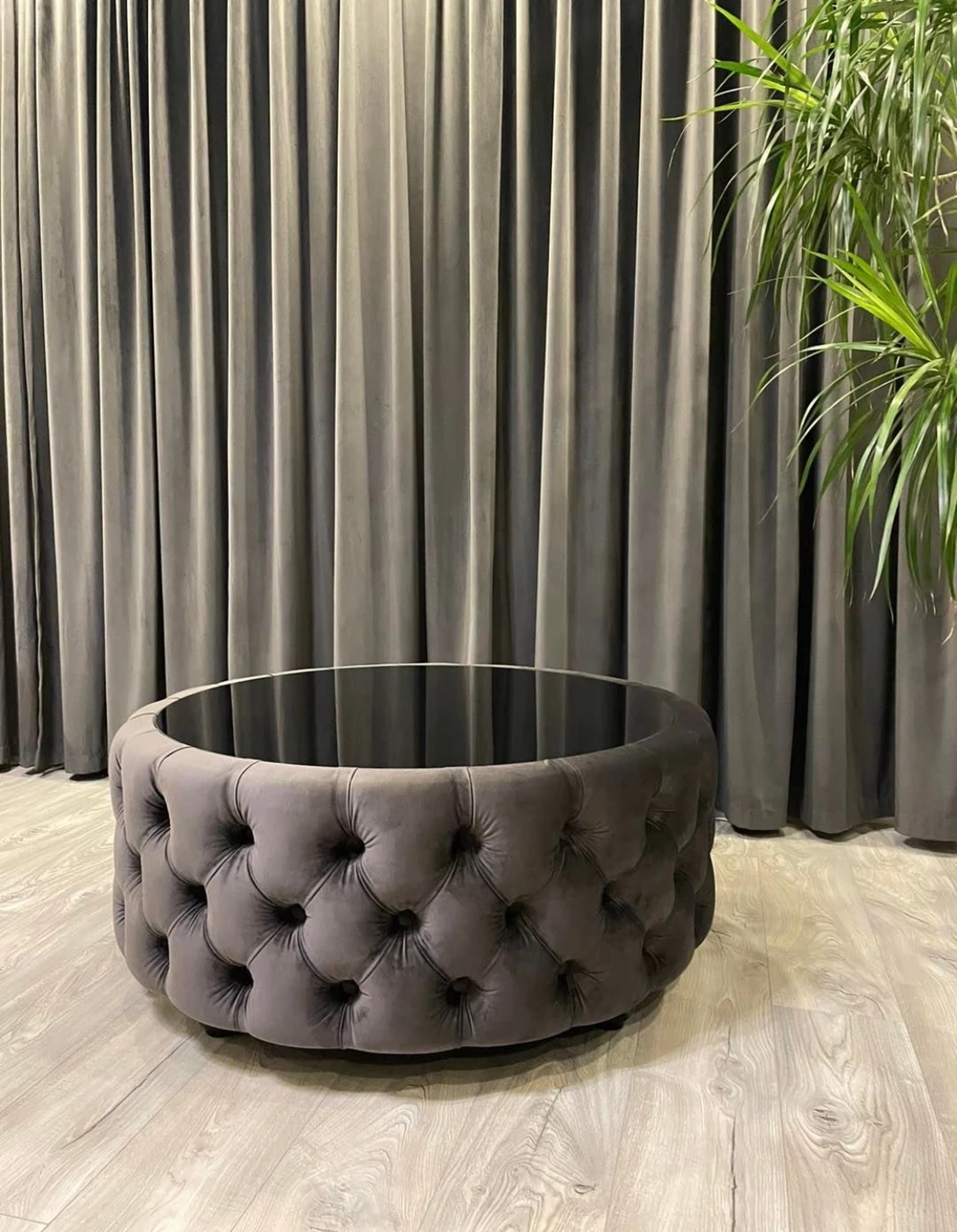 Pagaminti iš aukščiausios kokybės veliūrinio audinio ir apdirbti rankomis, šie staliukai išsiskiria elegancija bei tvirtumu. Apmušalai lengvai prižiūrimi ir atsparūs dėvėjimuisi, todėl baldai ilgai išlaiko puikią išvaizdą. Stiklinis arba medinis staliuko paviršius suteikia modernumo ir stiliaus jūsų svetainei, o staliuko dizainas su sagomis ir puošniomis detalėmis primena Provanso ar „Chesterfield“ stilių.