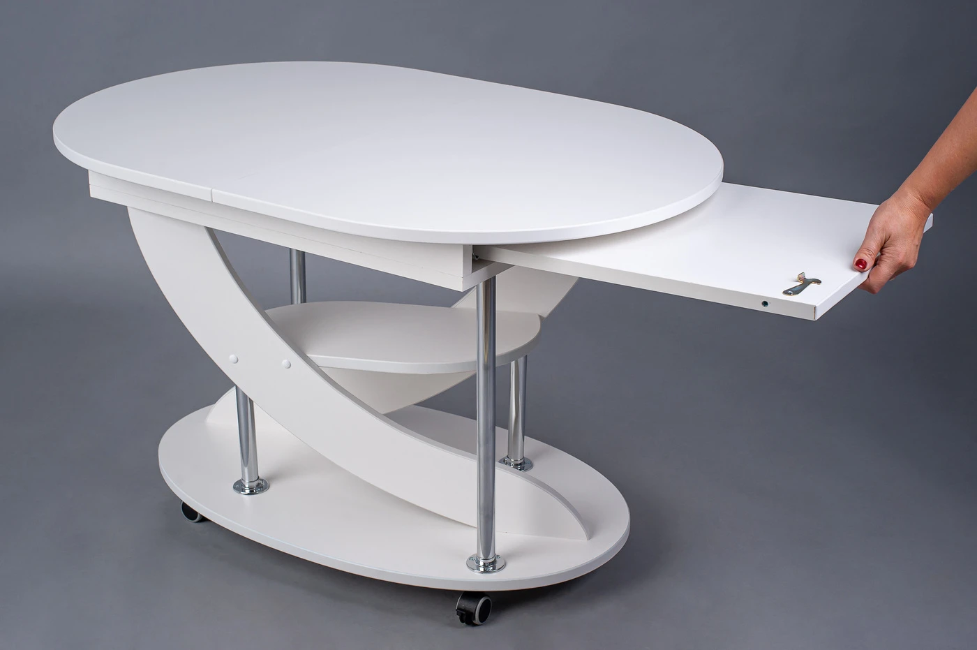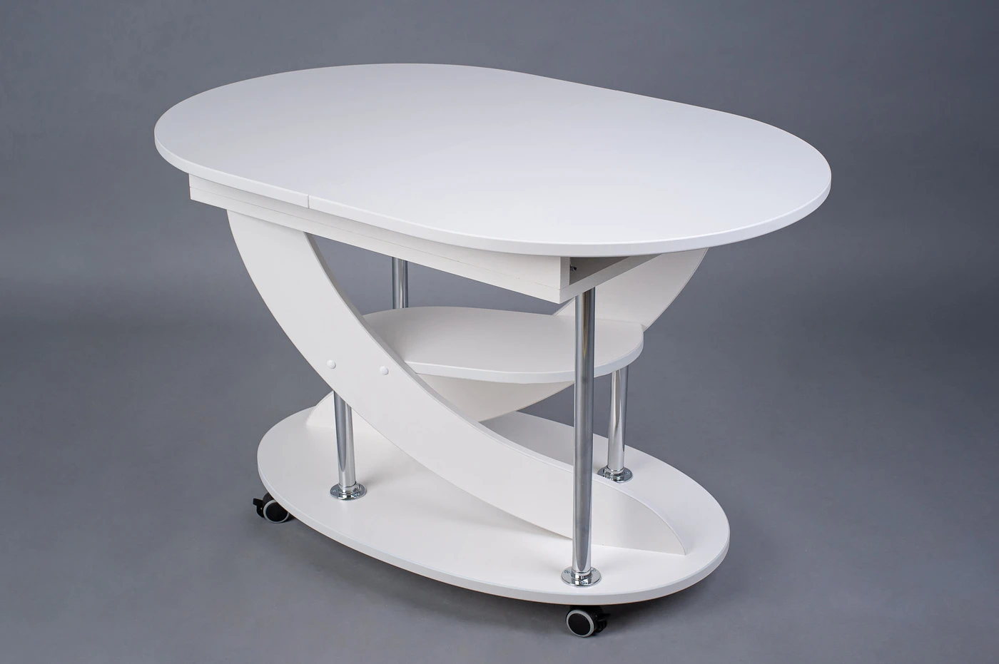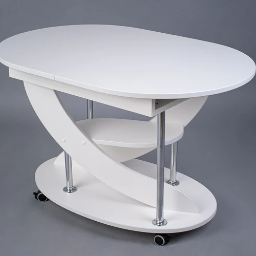 Staliuko detalių kraštai apklijuoti PVC juostele, kuri yra plastikinė ir atspari smūgiams. Staliuko ratukai yra fiksuojami.