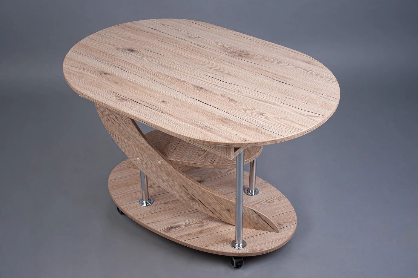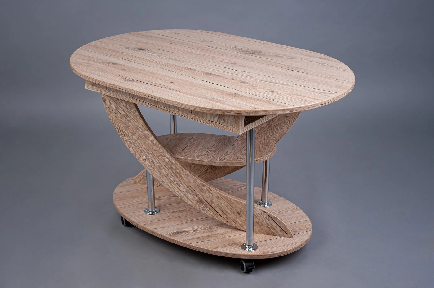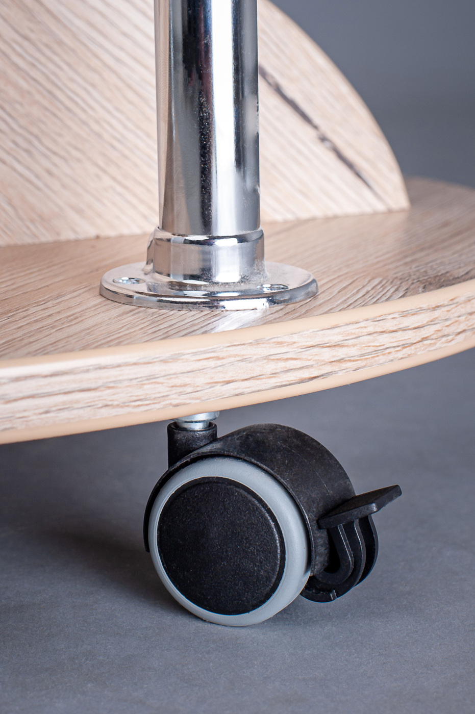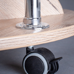 Staliuko detalių kraštai apklijuoti PVC juostele, kuri yra plastikinė ir atspari smūgiams. Staliuko ratukai yra fiksuojami.