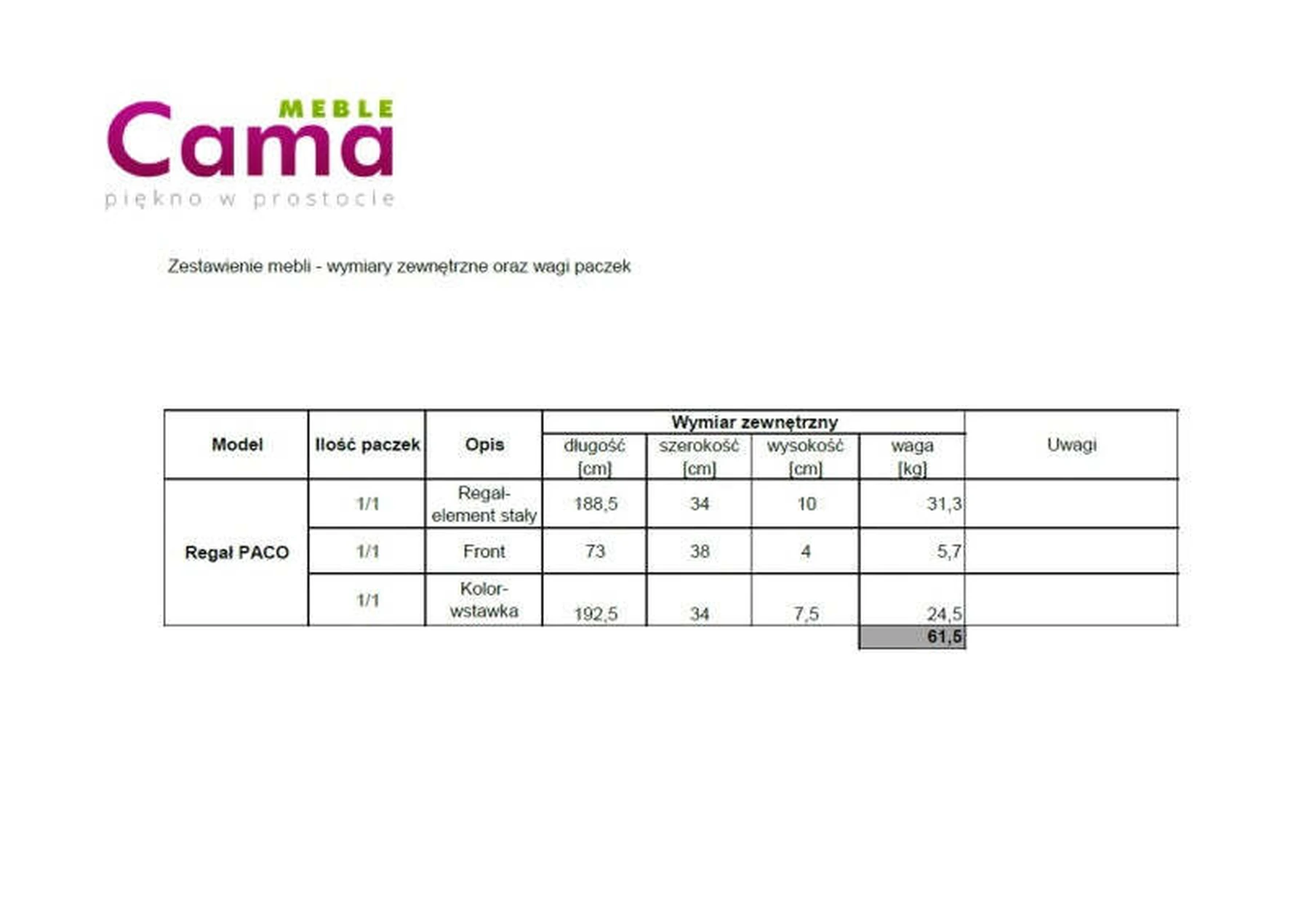 | Surinkto baldo aukštis | 187.5 |