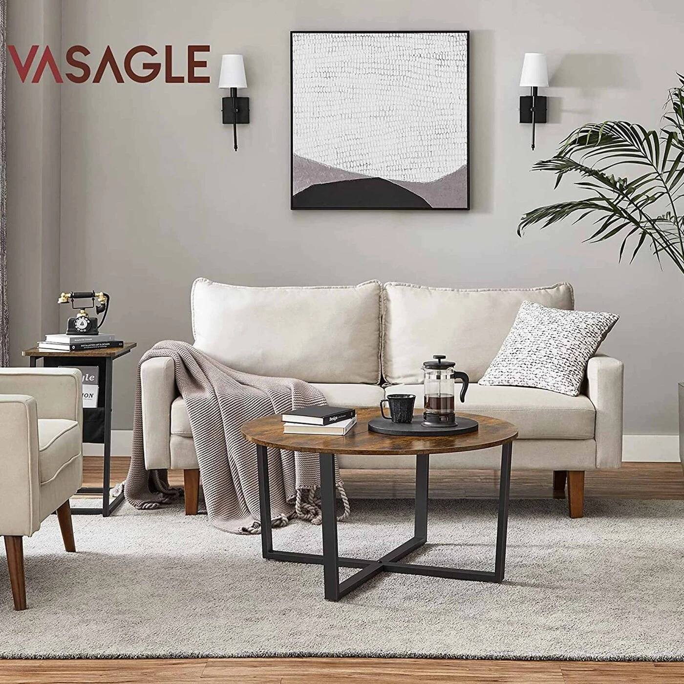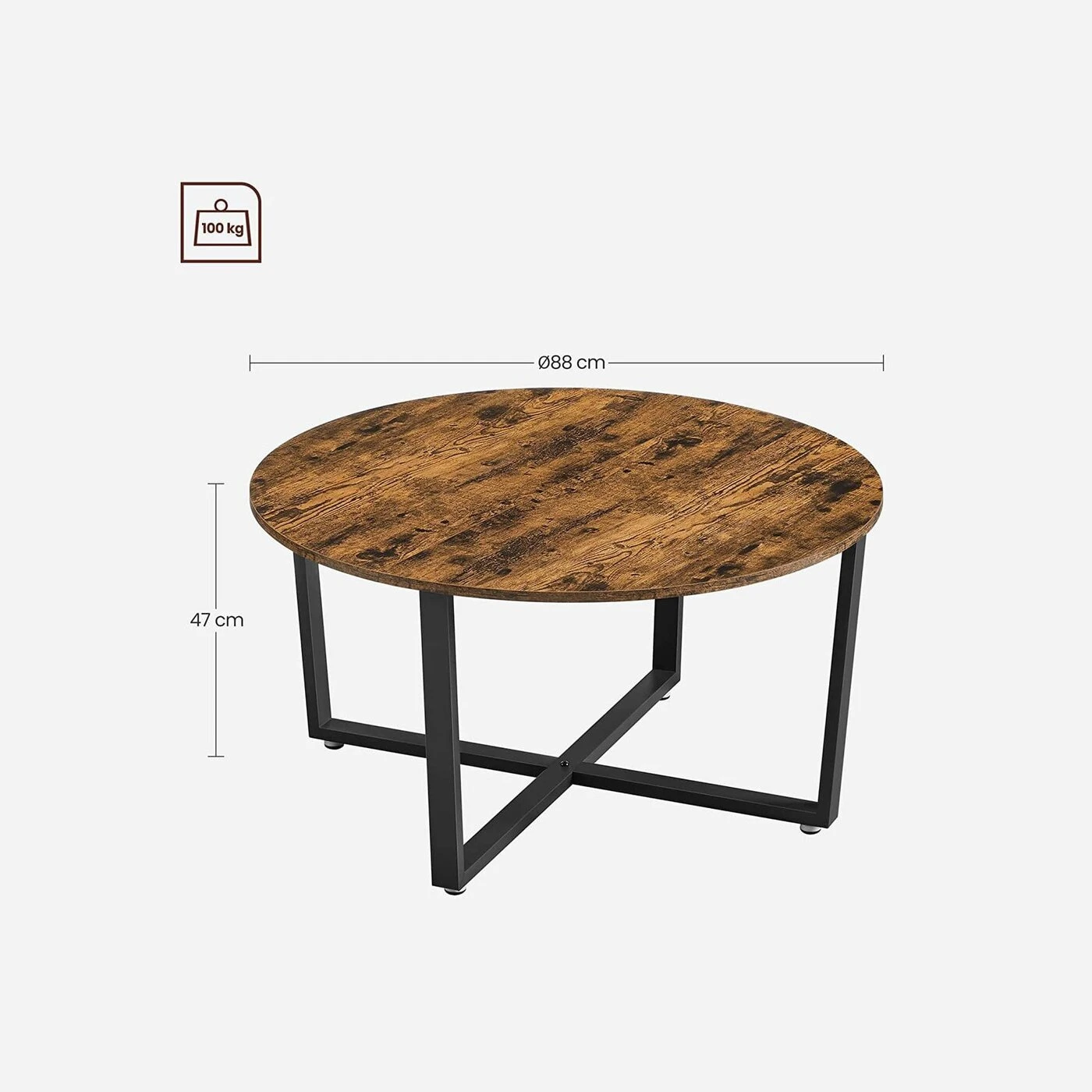Aprašymas buvo automatiškai išverstas, gali pasitaikyti klaidų. Informacija apie gaminį: - Spalva: vintažinė ruda-juoda - Medžiaga: medžio drožlių plokštės, plienas - Dydis: 88 x 47 cm (Ø x A) - Svoris: 9 kg - Maksimali statinė apkrova: 100 kgPristatymo komplektas:- 1 x kavos staliukas- 1 x priedų pakuotė- 1 x instrukcijaVASAGLE Pastabos:- Vaikams draudžiama laipioti ar žaisti su gaminiu.