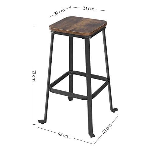 Aprašymas buvo automatiškai išverstas, gali pasitaikyti klaidų.Išsami informacija apie gaminį: Spalva: vintažinė ruda-juoda Medžiaga: medžio drožlių plokštė, plienas Bendras dydis: 45 x 45 x 71 cm (I x P x A) Sėdynės dydis: 31 x 31 cm (P x P) Vienos kėdės svoris: 5 kg Maks. Vienos kėdės statinė apkrova: 120 kg Pristatymo komplektas: 2 x baro kėdės 2 x priedų paketas 1 x instrukcijos (DE, EN, ES, FR, IT)VASAGLE Pastabos: Saugumo sumetimais vaikams draudžiama lipti ant gaminio ar žaisti su juo Šis baro kėdžių komplektas tinka 104-109 cm aukščio baro stalui.