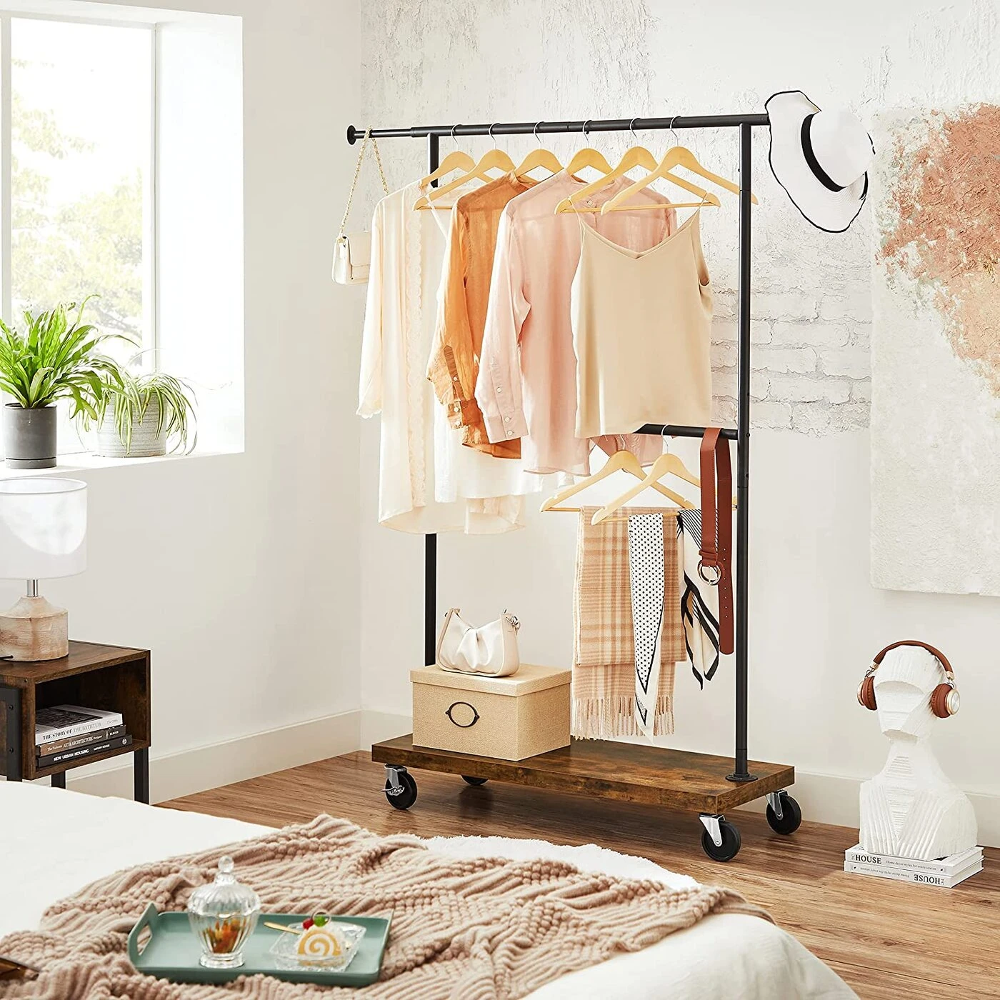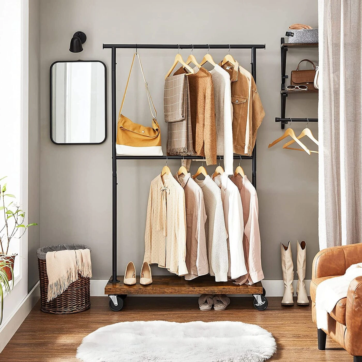 Aprašymas buvo automatiškai išverstas, gali pasitaikyti klaidų. Išsami informacija apie gaminį: - Spalva: vintažinė ruda-juoda - Medžiaga: medžio drožlių plokštės, plienas - Dydis: (110-168) x 40 x 180 cm (P x P x A) - Svoris: 11,2 kg - Maksimali viršutinės dalies statinė apkrova strypas: 50 kg - Maksimali šoninio prailginimo strypo statinė apkrova: 9 kg - Maksimali apatinės juostos statinė apkrova: 45,5 kg - Maks. statinė lentynos apkrova: 25 kgPristatymo komplektacija:- 1 x drabužių kabykla- 1 x aksesuarų pakuotė- 1 x instrukcija