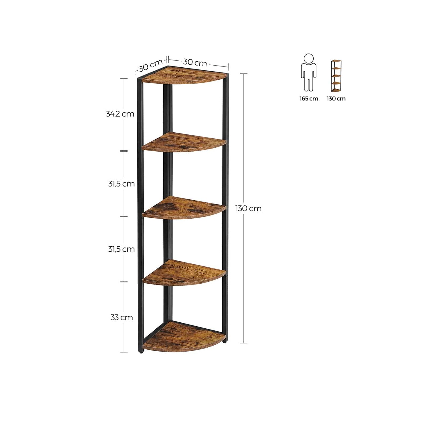 Aprašymas buvo automatiškai išverstas, gali pasitaikyti klaidų. Informacija apie gaminį: - Spalva: vintažinė ruda-juoda - Medžiaga: medžio drožlių plokštės, plienas - Dydis: 30 x 30 x 129,5 cm (P x P x A) - Svoris: 6 kg - Maksimali statinė apkrova vienam lentynos lygiui: 5 kgPristatymo komplektas:- 1 x kampinė lentyna- 1 x priedų pakuotė- 2 x apsauga nuo apvirtimo- 1 x instrukcijaVASAGLE Pastabos:- Pritvirtinkite šį gaminį prie sienos su komplekte esančiu apsaugančiu nuo apvirtimo.- Saugumo sumetimais vaikai neįleidžiami užlipti ant gaminio arba naudoti jį žaisti.