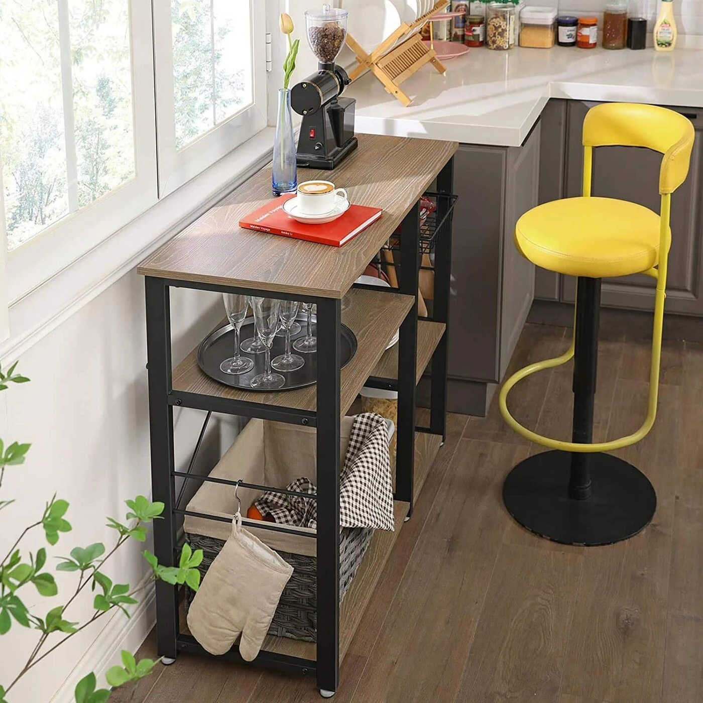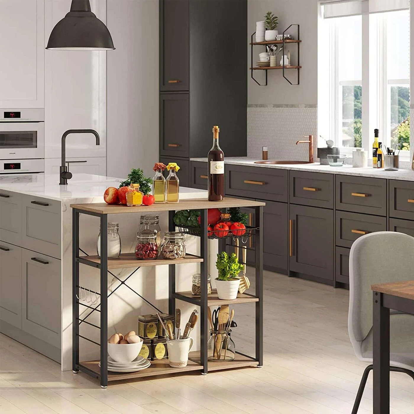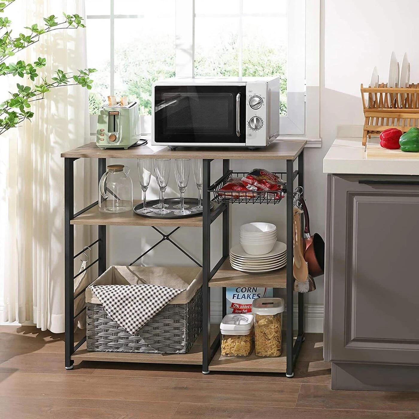 Aprašymas buvo automatiškai išverstas, gali pasitaikyti klaidų.Išsami informacija apie gaminį: - Spalva: smėlio ruda - Medžiaga: medžio drožlių plokštės, plienas - Dydis: 90 x 40 x 84 cm (P x P x A) - Svoris: 16,4 kg - Maksimali bendra statinė apkrova: 80 kgPristatymo komplektas: - 1 x virtuvės lentyna - 1 x priedų krepšys - 1 x apsaugantis nuo virtimo - 1 x rankinis (DE, EN, FR, ES, IT) VASAGLE Pastabos: - Higienos sumetimais venkite tiesioginio sąlyčio tarp maisto produktų ir vielos krepšelis.