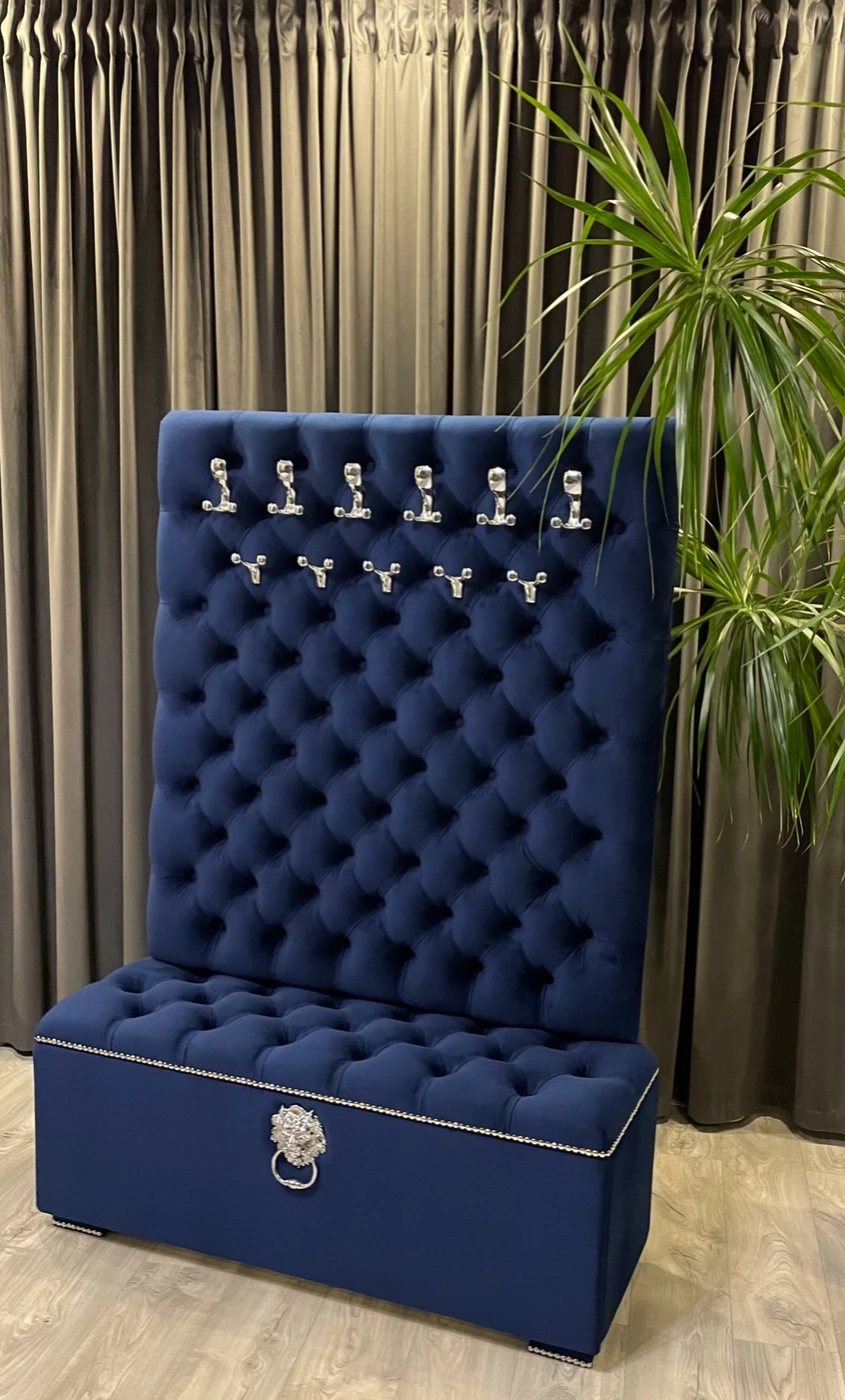 Prieškambario komplektas ne tik atrodo elegantiškai, bet ir pasižymi funkcionalumu. Batų dėžė suteikia erdvę avalynei, o kabykla – drabužiams ir aksesuarams. Metalinės dekoracijos, pagamintos iš nerūdijančio plieno, gali būti pasirinktos iš įvairių atspalvių, įskaitant auksą, sidabrą, varį ir žalvarį. Prieškambario baldų idėjos su tokiu prabangiu komplektu suteikia jūsų erdvei išskirtinio žavesio ir funkcionalumo. Taip pat galite pasirinkti iš įvairių sagų variantų, pradedant nuo klasikinių, aptrauktų audiniu, ir baigiant prabangiomis kristolinėmis ar auksinėmis.