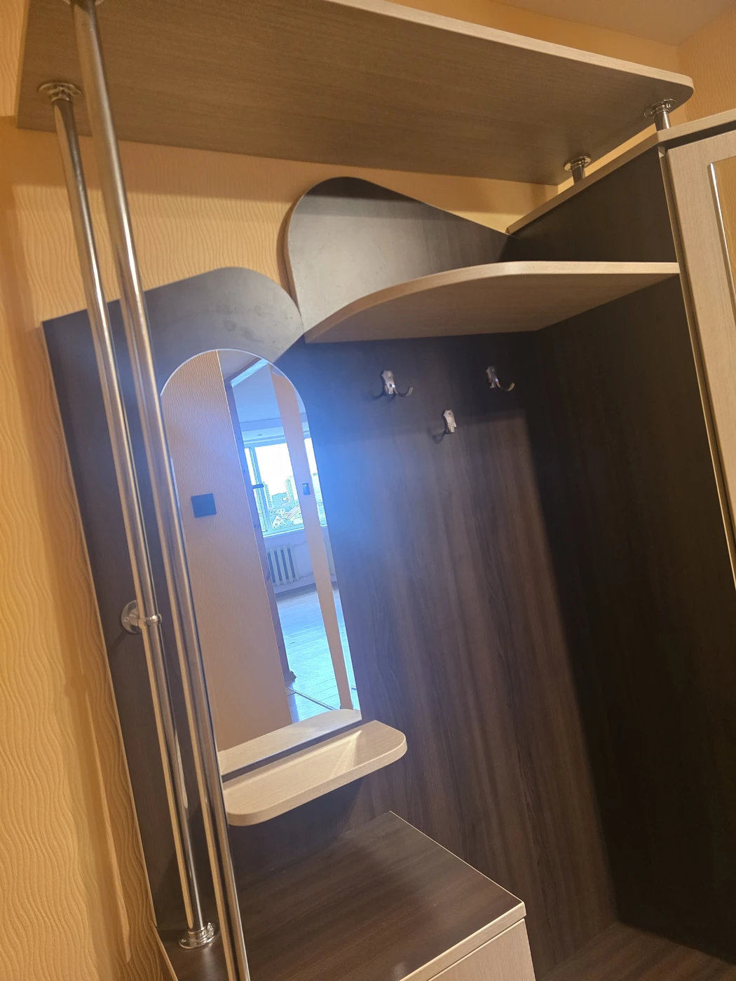 Prieškambario spinta iš medžio masyvoErdvus prieškambario spintos modelisStilinga prieškambario spinta pigiai