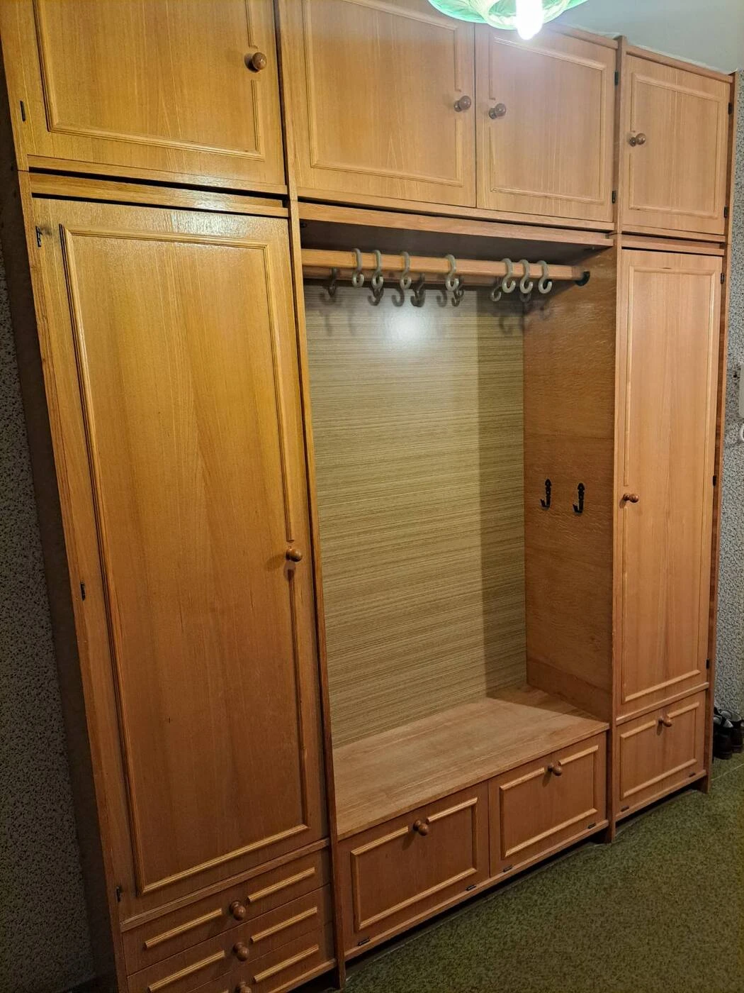 Medinė prieškambario spinta su antresolėmis.
