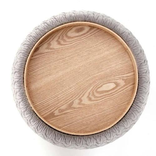 matmenys: fi54/37 cm, pufas su laikymo funkcija, medžiaga: audinys / MDF + natūrali fanera, spalva: šviesiai pilka