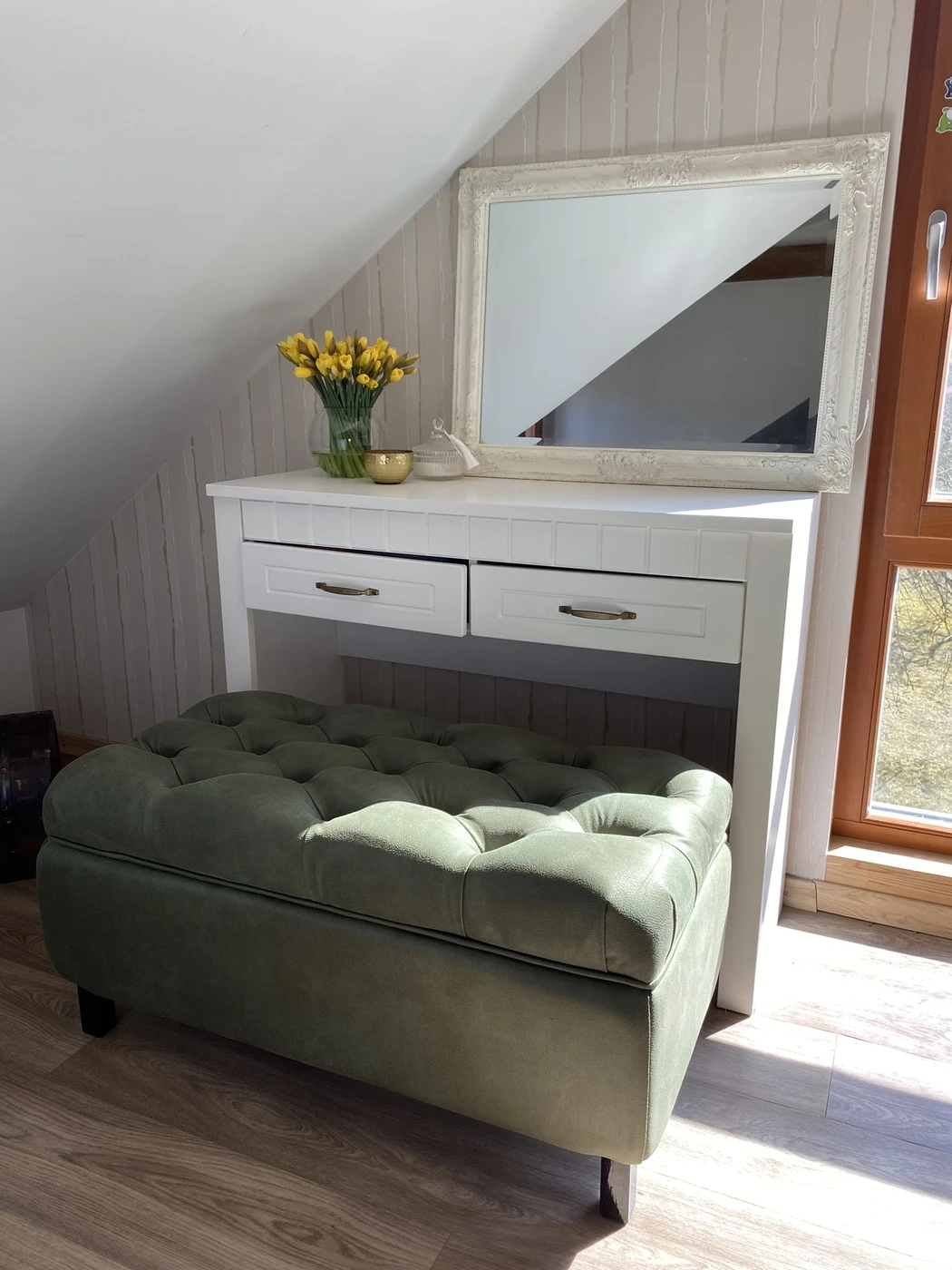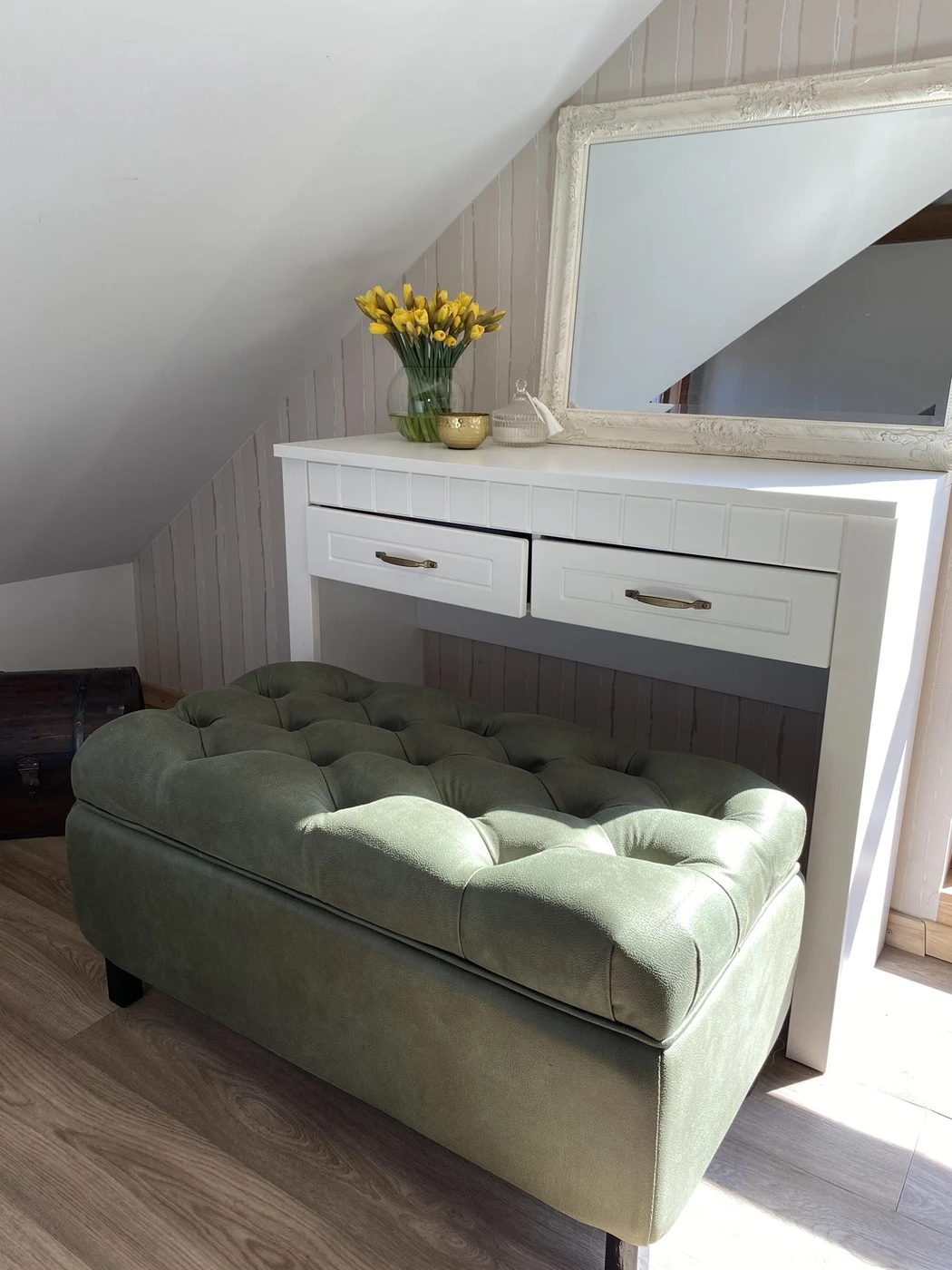 Naujas, rankų darbo pufas. Puikiai tinka naudoti namuose kaip pufą, kojų kėdutę, staliuką ar interjero detalę.