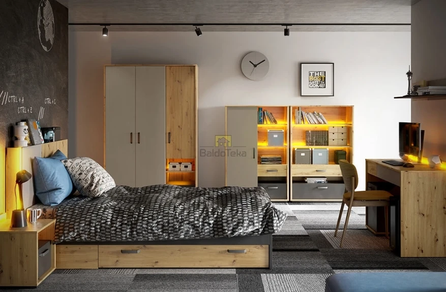 Spalva – ąžuolas artisan/šilkas flou/plienas.