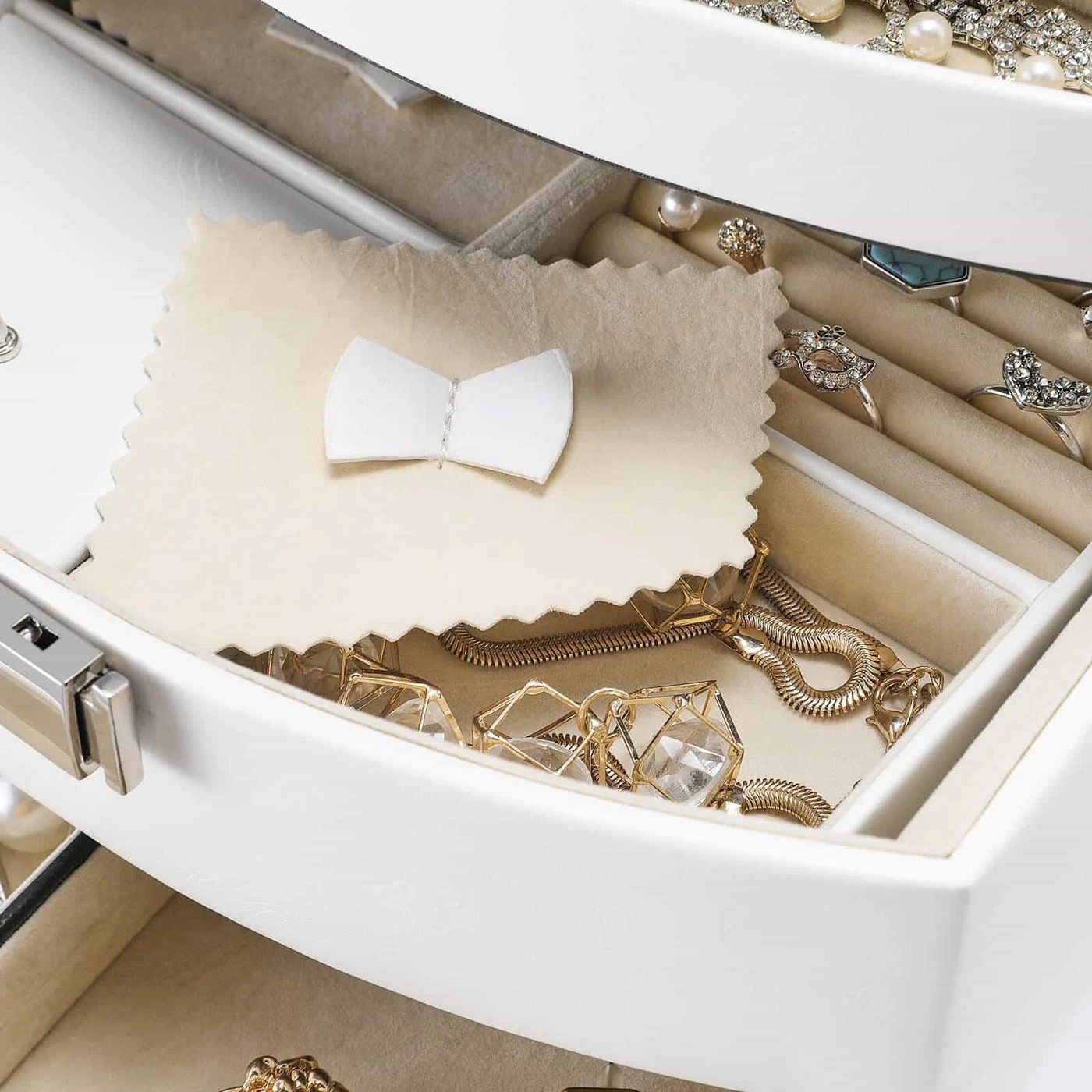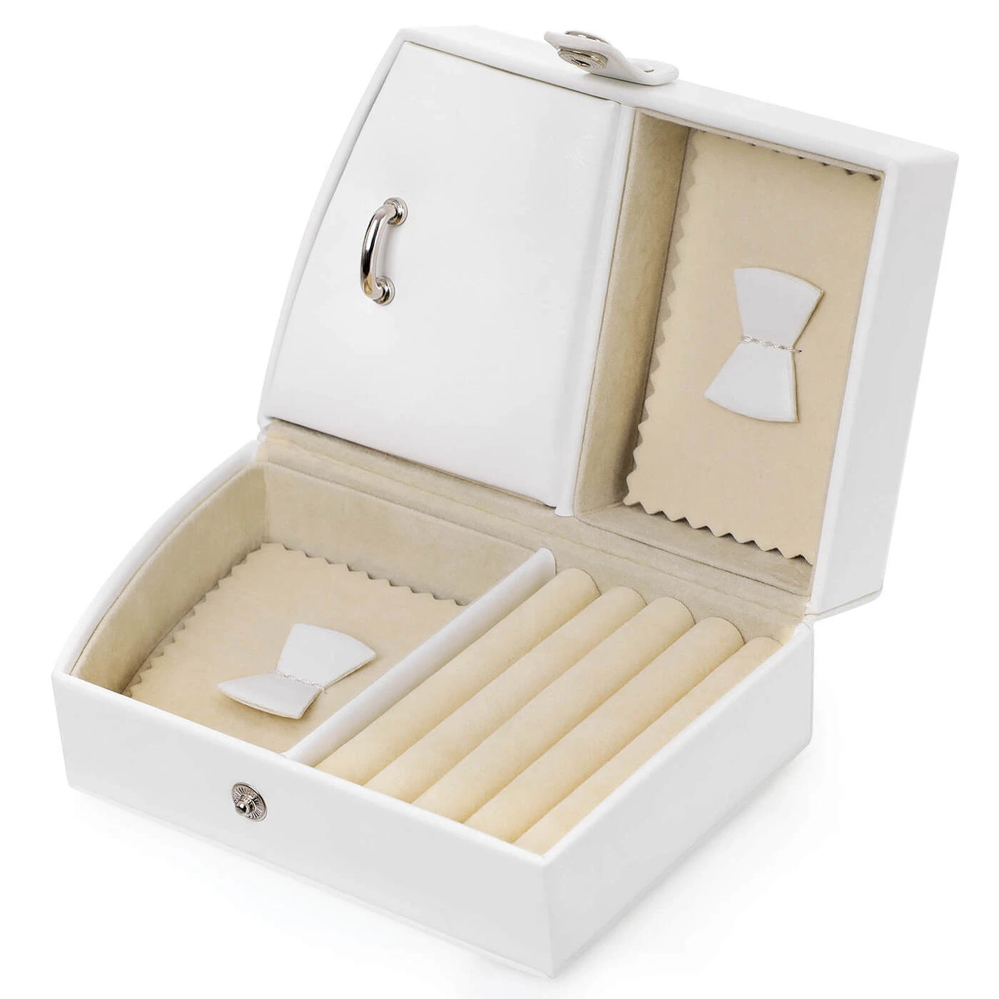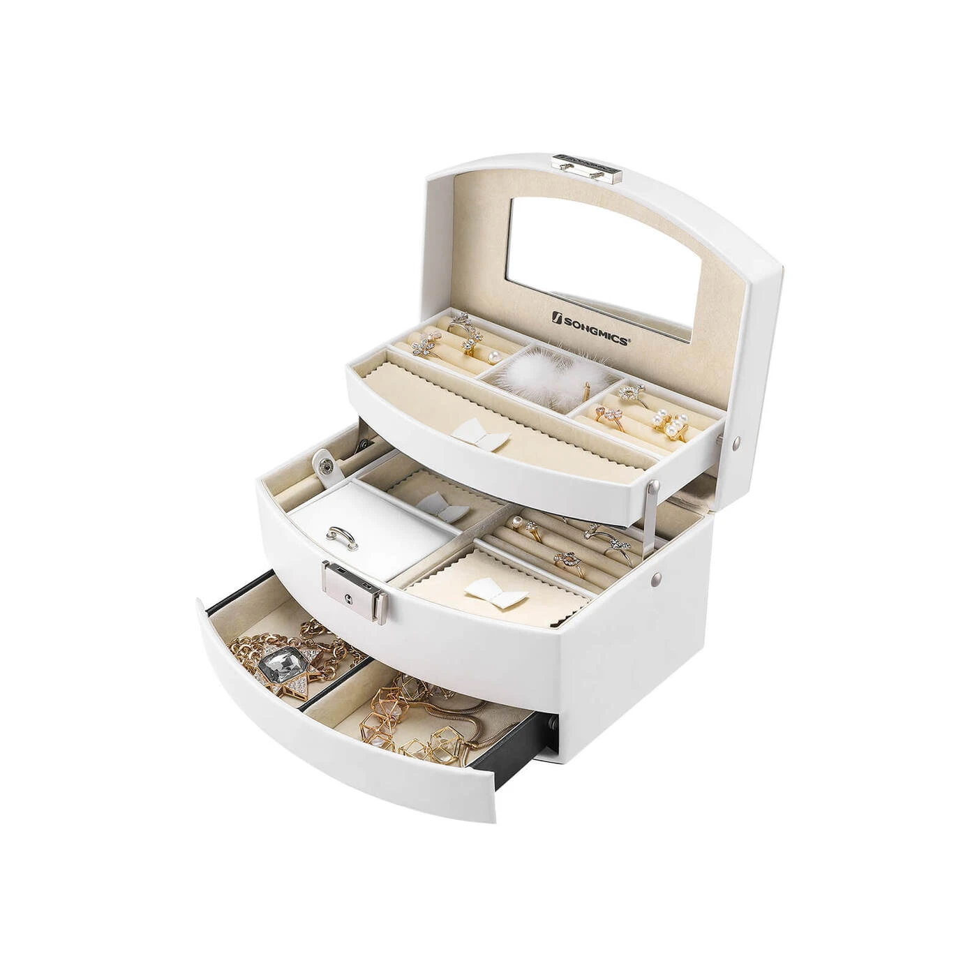 Aprašymas buvo automatiškai išverstas, gali pasitaikyti klaidų.Ar jus erzina, kad jūsų karoliai visada susipainioję, o žiedai guli kažkur bute? Tada laikas įsigyti šį elegantišką papuošalų laikiklį iš SONGMICS, kad galėtumėte tvarkingai laikyti vertingus papuošalus. Apsaugo visus jūsų aksesuarus Šioje papuošalų dėžutėje yra daug skyrių įvairiems papuošalams ir užtikrina, kad jūsų apyrankės, žiedai, auskarai, karoliai ir kt. bus saugiai laikomi. Minkštas aksominis pamušalas apsaugo jūsų papuošalus nuo įbrėžimų ir kitų pažeidimų. Dar didesnis pasirinkimas Siūlome jums rinktis iš įvairių dydžių ir spalvų papuošalų dėžučių; tiesiog ieškokite „SONGMICS juvelyrikos dėžutė“, kad sužinotumėte daugiau. Jei jūsų draugai taip pat yra papuošalų mylėtojai, viena iš šių dėžučių būtų ideali dovana!Išsami informacija apie gaminį: - Spalva: balta - Medžiaga: PU, MDF, aksomas - Gaminio dydis: 22 x 16 x 12,5 cm (I x P x A) - Mini dėžutės dydis: 14 x 9 x 6 cm (P x P x A) - Svoris: 1,1 kg Pakuotės turinys: - 1 x papuošalų dėžutė