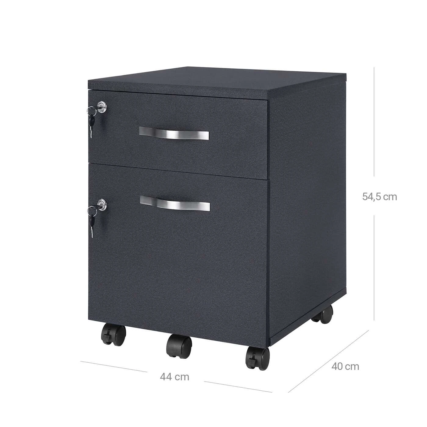 Aprašymas buvo automatiškai išverstas, gali pasitaikyti klaidų.Praktiškas pagalbininkas darbe Ar biure trūksta vietos sandėliavimui? Tuomet turėtumėte išbandyti šį rakinamą mobilųjį konteinerį iš VASAGLE! Šioje spintoje galima laikyti viską, ko reikia dirbant. Jūsų spausdintuvas taip pat turi savo vietą lentynoje.Baldas visoms progoms Prie lovos galvūgalio mobilus konteineris tarnauja kaip naktinis staliukas, ant kurio galite pastatyti, pavyzdžiui, naktinę lempą; šalia sofos virsta šoniniu stalu, ant kurio po ranka puikuojasi dubenys su užkandžiais, puodeliais ir pan.. Patogūs ratukai Šioje kartotekoje yra 5 ratukai, todėl ją nesunkiai perstumsite. Arba pritvirtinkite spintelę vienoje vietoje 2 rakinamais ratukais. Apatiniame stalčiuje esantis volelis taip pat gerai sukimba ir užtikrina didelį atsparumą.Informacija apie gaminį: - Spalva: juoda - Medžiaga: E1 klasės MDF (vidutinio tankio medienos plaušų plokštė), PVC - Dydis: 40 x 44 x 54,5 cm (P x P x A) - Svoris: 17 kg - Maksimali statinė apkrova: 50 kg Pristatymo apimtis: -1 x mobilus konteineris-1 x konteineris su priedais-1 x instrukcija (DE,EN,FR,ES,IT)VASAGLE Pastabos:- Nerekomenduojame naudoti gaminio vaikams iki 3 metų amžiaus; jei taip, prašome tik prižiūrint suaugusiajam.- Neleiskite vaikams lipti ar žaisti su gaminiu, kad išvengtumėte sužeidimų dėl apvirtimo.