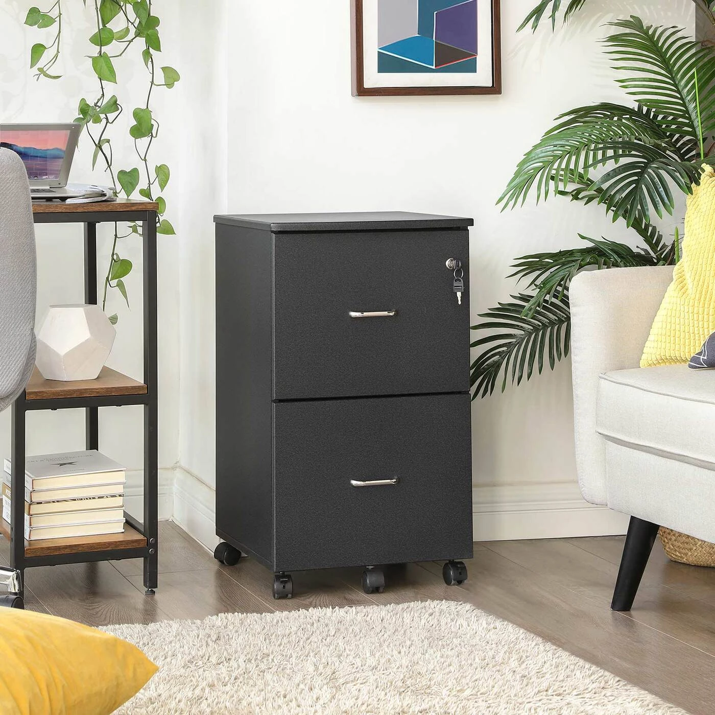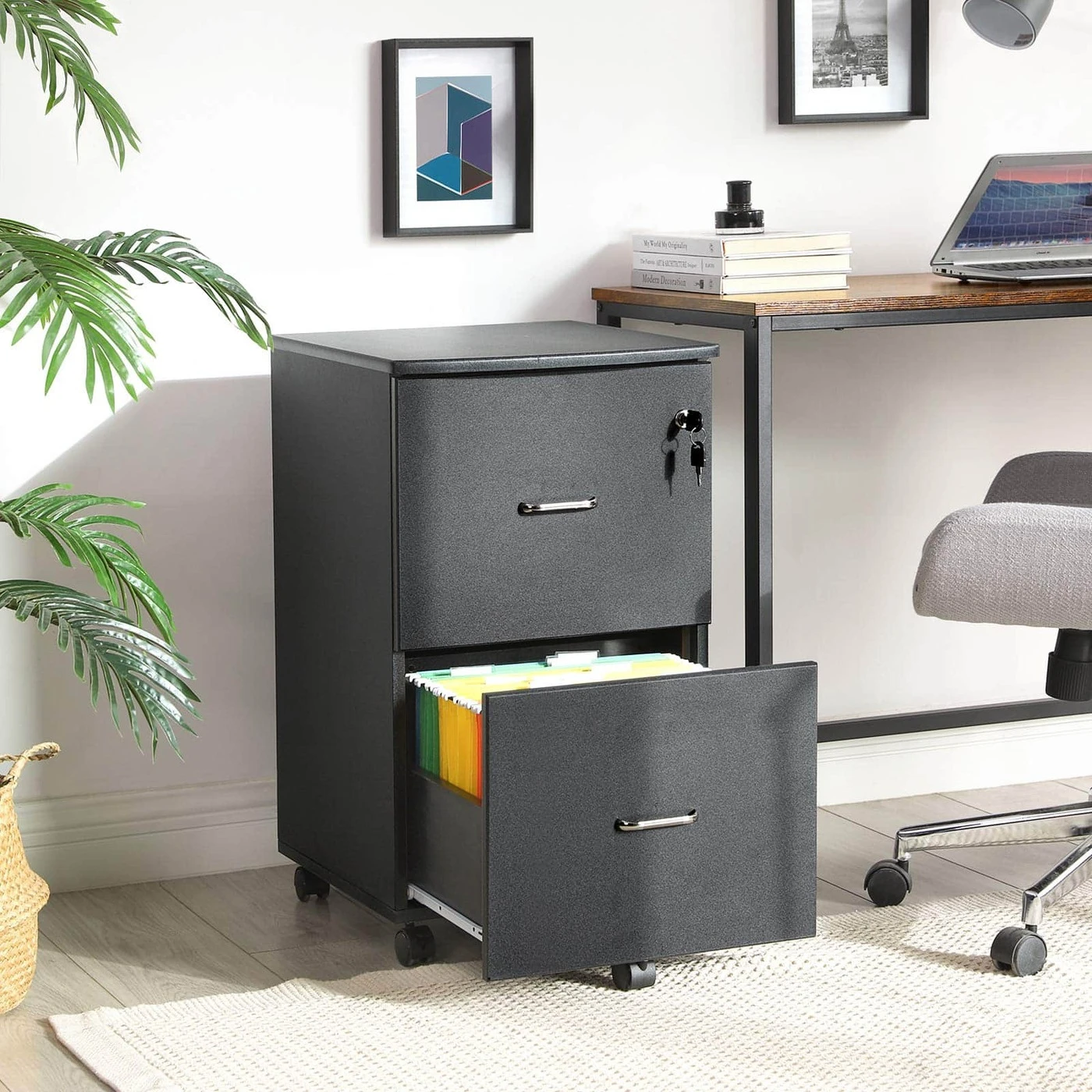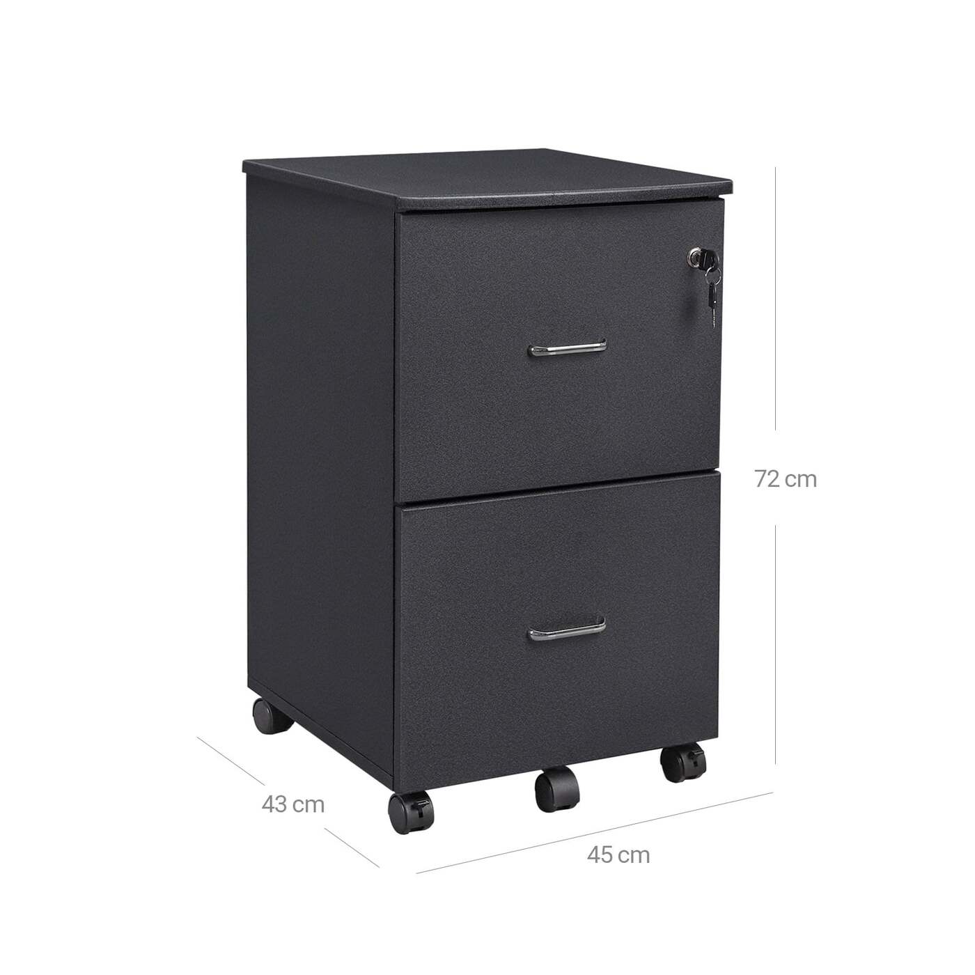 Aprašymas buvo automatiškai išverstas, gali pasitaikyti klaidų.Tvarka yra pusė gyvenimo; tai taikoma ir jūsų darbo vietai. Su šiuo ritininiu konteineriu (tinka A4 ar raidžių formato failų aplankams su etikete) galite priversti dingti krūvas bylų ir greitai pašalinti įprastą stalo chaosą Praktinis pagalbininkas studijoje Jei dirbate namų biure, galite įdėti šalia savo stalo esantį ritinėlių konteinerį, kad galėtumėte ten laikyti dokumentus. Jūsų spausdintuvas taip pat turi savo vietą lentynoje.Baldas visoms progoms Prie lovos galvūgalio mobilus konteineris tarnauja kaip naktinis staliukas, ant kurio galite pastatyti, pavyzdžiui, naktinę lempą; šalia sofos virsta šoniniu stalu, ant kurio jūsų laukia dubenys su užkandžiais, žurnalais ir pan. Arba pritvirtinkite spintelę vienoje vietoje naudodami du rakinamus ratukus. Apatiniame stalčiuje esantis volelis taip pat gerai sukimba ir užtikrina didelį atsparumą.Informacija apie gaminį: - Spalva: juoda granitinė - Medžiaga: E1 klasės MDF (vidutinio tankio medienos plaušų plokštė), PVC - Dydis: 43 x 45 x 72 cm (P x P x A) - Svoris: 20,5 kg - Maksimali statinė apkrova: 50 kgTaikymo sritis pristatymo metu: - 1 x ritininis konteineris - 1 x maišelis priedams - 1 x maišelis su atsarginiais priedais - 1 x surinkimo įrankis - 1 x vadovas (DE, EN, FR, IT, ES) VASAGLE Pastabos: - Laikykite gaminį toliau nuo aštrūs daiktai ir šilumos šaltiniai .- Gaminys ilgą laiką neturi liestis su vandeniu.- Prieš naudodami surinkite pateiktus ratukus; gaminio negalima naudoti be ritinėlių.