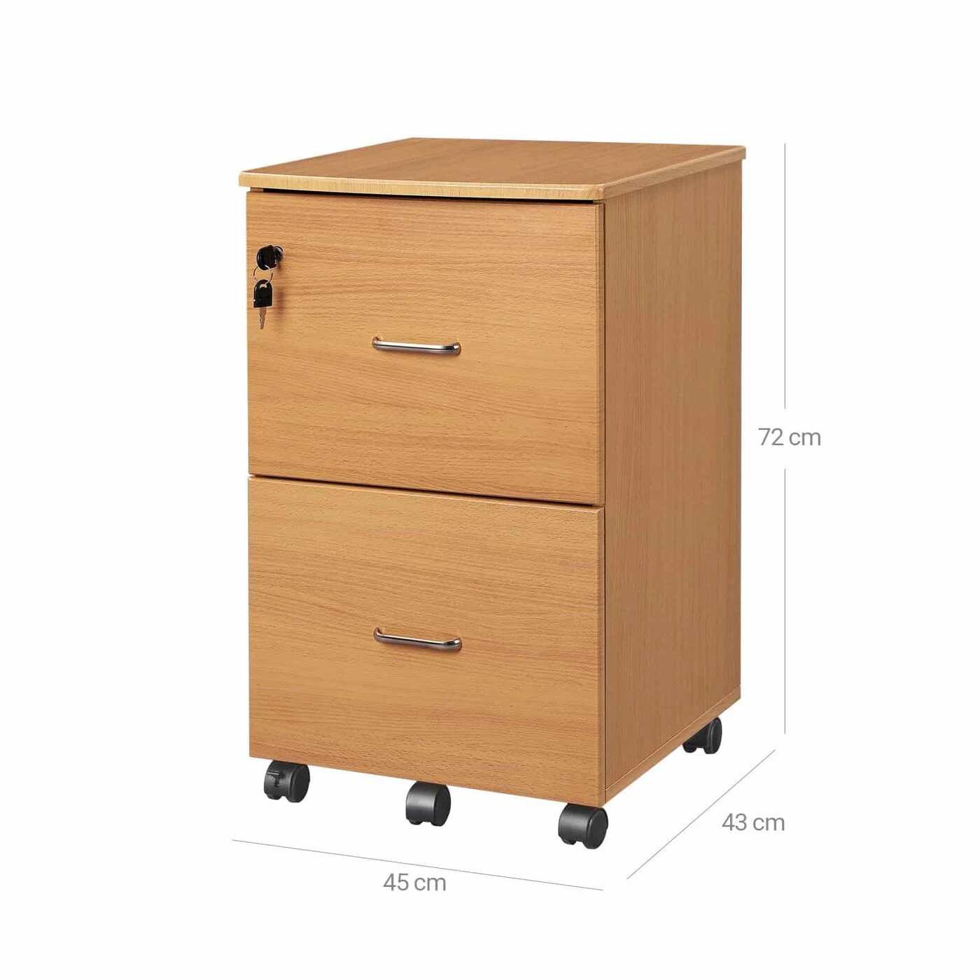 Aprašymas buvo automatiškai išverstas, gali pasitaikyti klaidų.Tvarka yra pusė gyvenimo; tai taikoma ir jūsų darbo vietai. Su šiuo ritininiu konteineriu (tinka A4 ar raidžių formato failų aplankams su etikete) galite priversti dingti krūvas bylų ir greitai pašalinti įprastą stalo chaosą Praktinis pagalbininkas studijoje Jei dirbate namų biure, galite įdėti šalia savo stalo esantį ritinėlių konteinerį, kad galėtumėte ten laikyti dokumentus. Jūsų spausdintuvas taip pat turi savo vietą lentynoje.Baldas visoms progoms Prie lovos galvūgalio mobilus konteineris tarnauja kaip naktinis staliukas, ant kurio galite pastatyti, pavyzdžiui, naktinę lempą; šalia sofos virsta šoniniu stalu, ant kurio jūsų laukia dubenys su užkandžiais, žurnalais ir pan. Arba pritvirtinkite spintelę vienoje vietoje naudodami du rakinamus ratukus. Apatiniame stalčiuje esantis volelis taip pat gerai sukimba ir užtikrina didelį atsparumą.Informacija apie gaminį: - Spalva: buko spalvos - Medžiaga: E1 klasės MDF (vidutinio tankio medienos plaušų plokštė), PVC - Dydis: 43 x 45 x 72 cm (P x P x A) - Svoris: 20,5 kg - Maksimali statinė apkrova : 50 kg Pristatymo apimtis: - 1 x mobilus konteineris - 1 x priedų krepšys - 1 x maišelis su atsarginiais priedais - 1 x surinkimo įrankis - 1 x vadovas (DE, EN, FR, IT, ES) VASAGLE Pastabos: - Prašome saugoti gaminį atokiai nuo aštrių daiktų ir šilumos šaltinių.- Gaminys neturi ilgą laiką liestis su vandeniu - Prieš naudojimą surinkite pateiktus ratukus; gaminio negalima naudoti be ritinėlių.