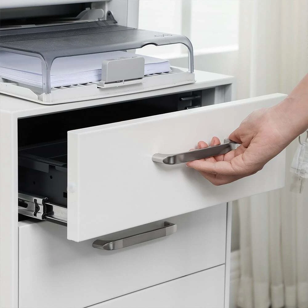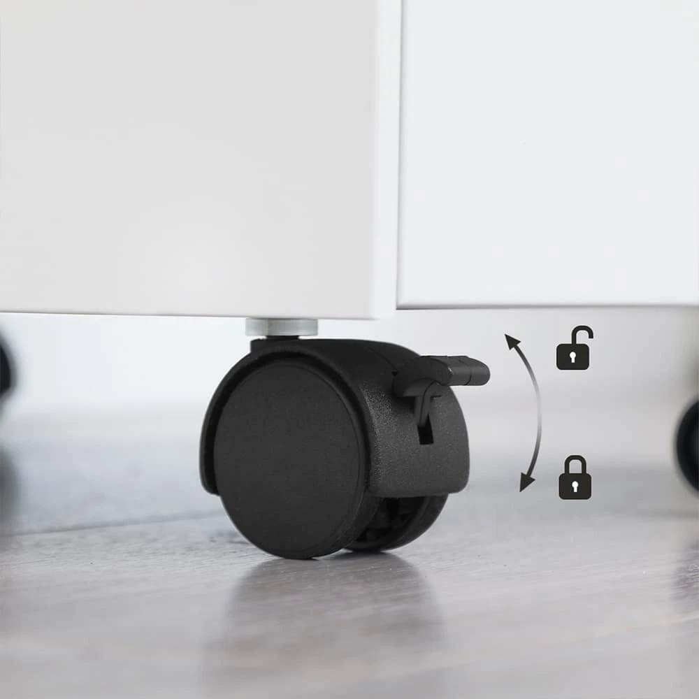 Aprašymas buvo automatiškai išverstas, gali pasitaikyti klaidų.Supaprastinkite darbą biure Ar jūsų stalą dengia krūvos dokumentų? Laikykite juos tvarkingus šiame SONGMICS mobiliajame konteineryje! 3 stalčiai, pakabinamas failas ir išimamas skyrius kanceliarinėms prekėms užtikrina, kad visas jūsų biuro reikmenis būtų galima laikyti aiškiai ir lengvai randamai Stabilus, praktiškas ir lankstus Nesijaudinkite dėl šios kartotekos spintos stabilumo! Kiekvienas metalinis stalčius gali būti apkrautas iki 15 kg ir yra aprūpintas aukščiausios kokybės pilnai ištraukiamais bėgeliais, kurie leidžia sklandžiai ištraukti ir įstumti. Ar norėtumėte perkelti konteinerį į kitą kambarį? 5 spintelės ratukai, iš kurių 2 yra užrakinami, atlieka darbą už jus. Nesvarbu, ar dirbate biure, ar namuose, ši dokumentų spinta leidžia atsisveikinti su chaosu prie stalo ir padidinti produktyvumą.Informacija apie gaminį: - Spalva: balta - Medžiaga: plienas, metalinė rankena - Dydis: 39 x 48 x 60 cm (P x P x A) - Svoris: 18,5 kg - Maksimali statinė apkrova vienam stalčiui: 15 kg Pristatymo apimtis: - 1 x Mobilus konteineris - 1 x Stalčių tvarkyklė biuro reikmenims - 1 x Pakabinamasis failas - 1 x Priedų paketas - 1 x Instrukcija (DE, EN, FR, IT, ES) SONGMICS Pastabos: - Didžiausia vieno stalčiaus apkrova yra 15 kg . Nepildykite stalčių sunkesniais daiktais. Vaikams neleidžiama lipti ant gaminio ar žaisti su juo, kad išvengtų sužalojimų dėl apvirtimo.