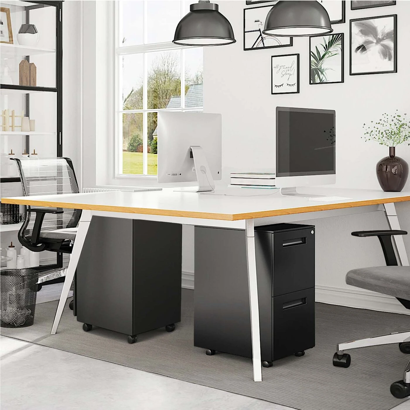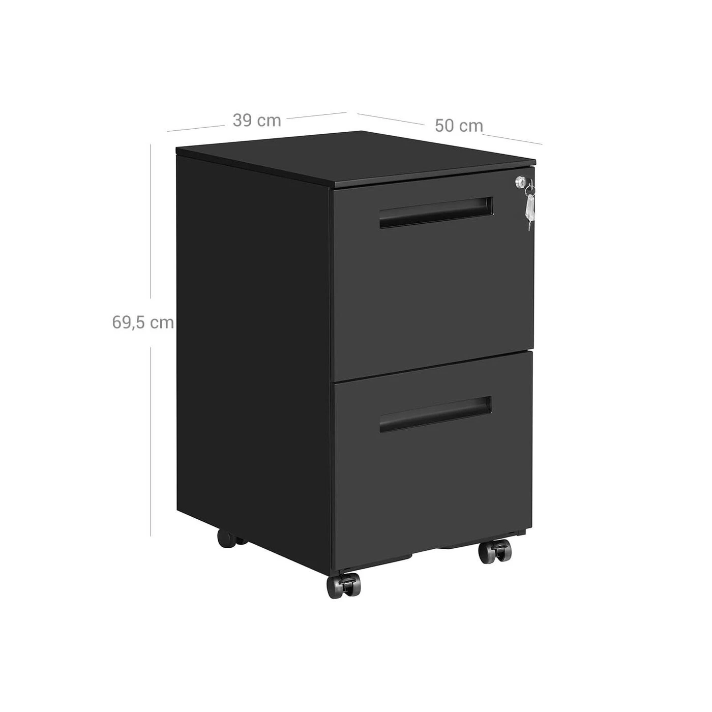 Aprašymas buvo automatiškai išverstas, gali pasitaikyti klaidų.Tinka įvairiems pakabinamiems failams Skirtingai nuo įprastų ritininių konteinerių, kiekvienas mūsų kartotekų spintos stalčius turi 2 reguliuojamus strypus. Taip pat pagal poreikį galite rūšiuoti ir paduoti įvairaus dydžio (A4, raidžių, legalų ar F4 dydžio) pakabinamus failus.. Tvirti ir praktiški Šiame ritininiame konteineryje savo vietą ras dokumentai, kanceliarinės prekės, asmeniniai daiktai, viskas, ko reikia darbe. Į kiekvieną iš 2 didelių stalčių galima pakrauti iki 23 kg, o pilni išilginiai užtikrina didesnį komfortą atidarant ir uždarant stalčius. Plieninė konstrukcija taip pat yra pakankamai tvirta, kad šią kartoteką būtų galima naudoti ilgus metus. Ieškote praktiškos, erdvios komodos, kad supaprastintumėte savo darbą? Jūsų paieška baigėsi, nes jau radote!Išsami informacija apie gaminį: Spalva: Matinė juoda Medžiaga: Plienas Dydis: 39 x 50 x 69,5 cm (P x P x A) Svoris: 19,4 kg Maks. Vieno stalčiaus apkrova: 23 kg Pristatymo komplektas: 1 x mobilus konteineris su 2 stalčiais 1 x priedų krepšys 1 x instrukcija (DE, EN, IT, FR, ES) SONGMICS Pastaba: Netraukite iš karto stalčių su daiktais laikas neapvirsti, kad būtų išvengta spintų.