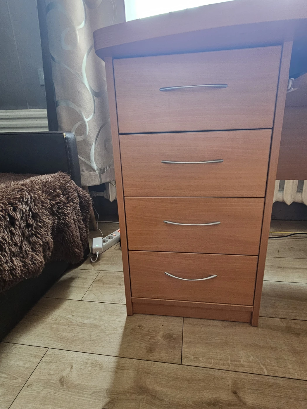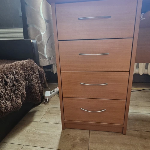 • 4 stalčiai (vienas stalčius šiek tiek nuleistas žemyn (2 nuo viršaus, matosi nuotraukose) tačiau visi atsidaro ir veikia tvarkingai)