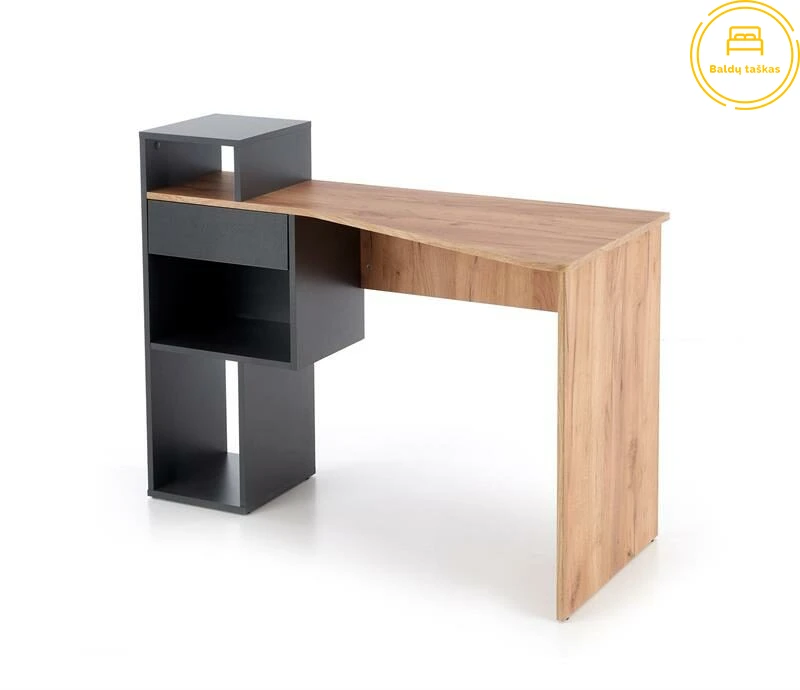 Funkcionalus rašomasis stalas darbui ir žaidimui. Dėl praktiško dizaino baldas užtikrina aukštą naudojimo komfortą maksimaliai išnaudojant turimą erdvę. Stalčiuose ar lentynose lengvai susidėsite segtuvus, užrašų knygeles ir kitus biuro reikmenis. Puikus sprendimas biurams, namų studijoms ar paauglio kambariui.