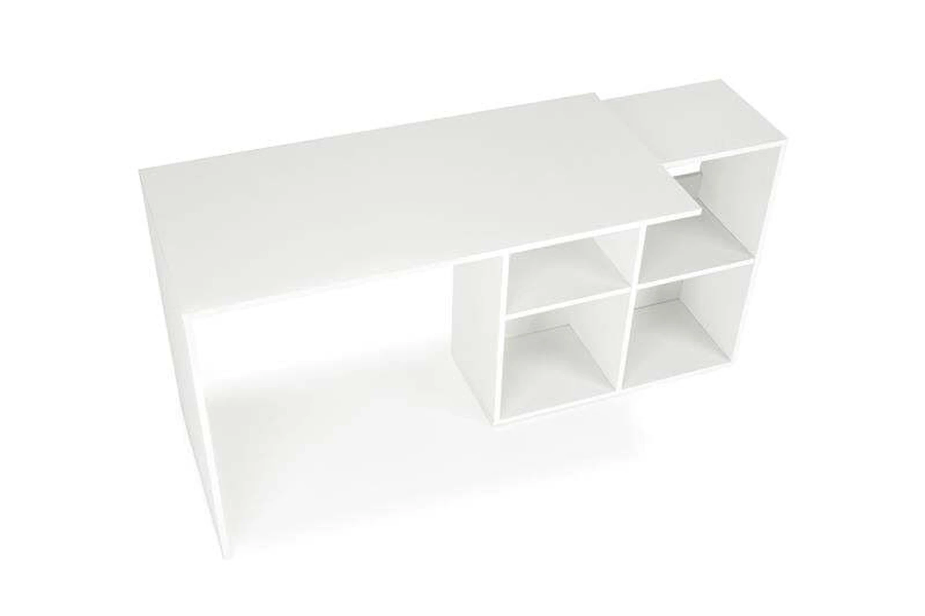 matmenys: 115/77/74 cm, įprastas arba kampinis rašomasis stalas, medžiaga: laminuota medžio drožlių plokštė, spalva: balta