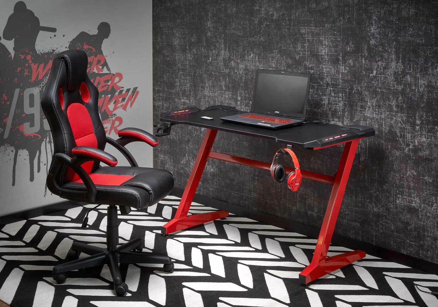 matmenys: 122/60/74 cm, LED lemputė, dangtelio laikiklis, priedų laikiklis, medžiaga: laminuotas MDF / milteliniu būdu dažytas plienas, spalva: juoda / raudona