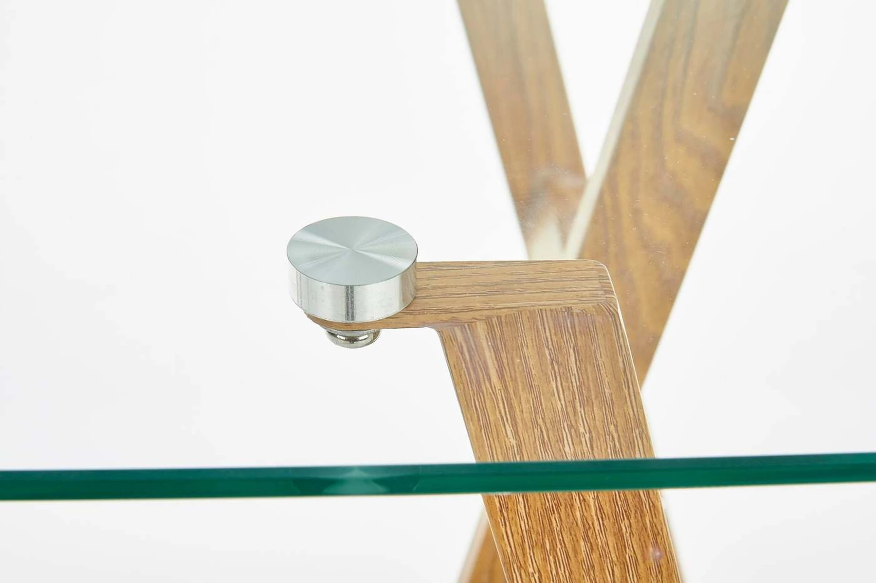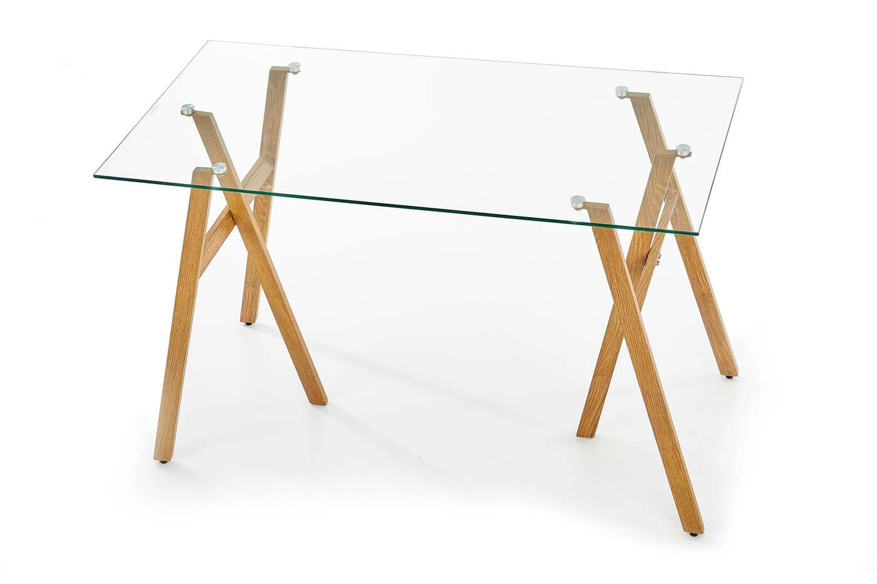 matmenys: 120/60/76 cm, medžiaga: stiklas / dažytas plienas, spalva: medaus ąžuolas