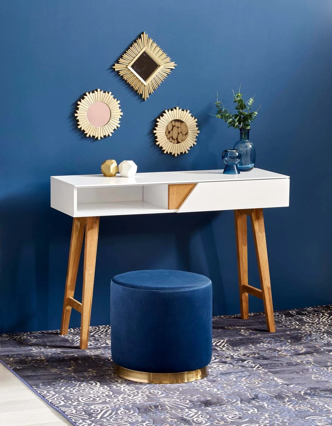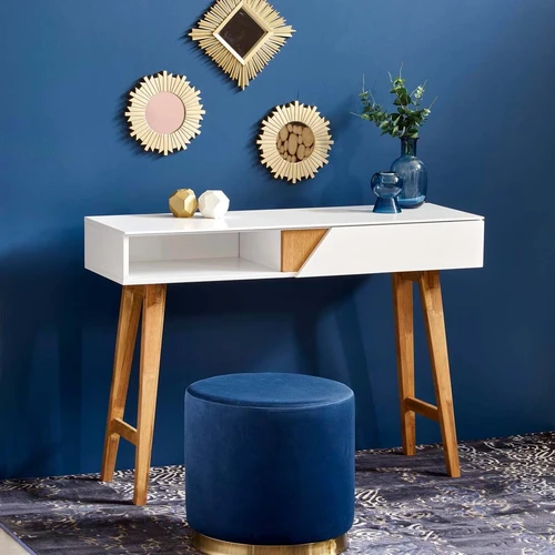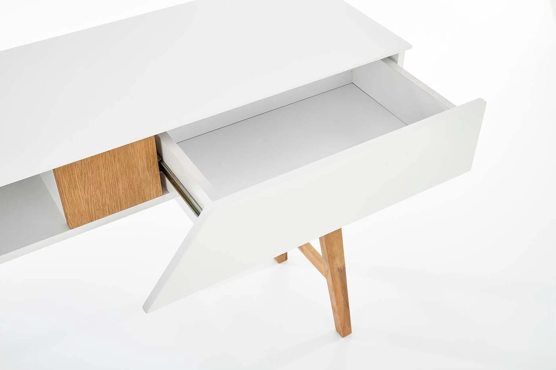 matmenys: 110/35/80 cm, medžiaga: lakuotas MDF / medžio masyvas, spalva: balta matinė / natūralus