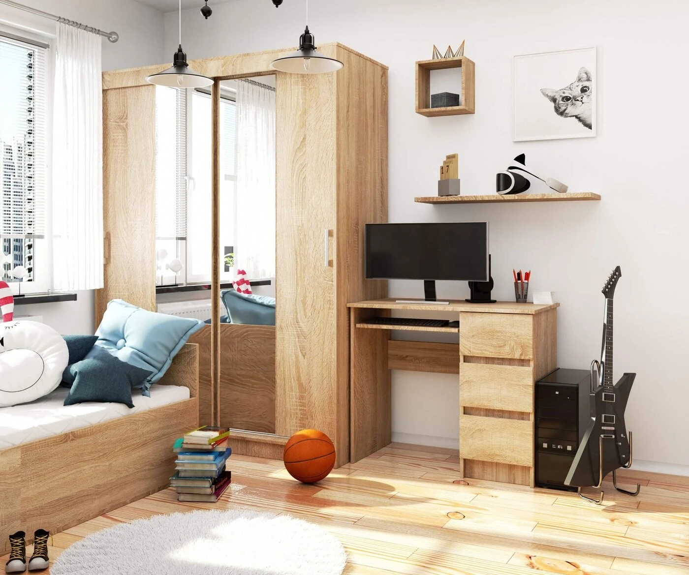 Aprašymas buvo automatiškai išverstas, gali pasitaikyti klaidų. Pristatomas kompiuterio stalas A-6, ąžuolo spalvos RIGHT yra puikus sprendimas žmonėms, kurie vertina funkcionalumą ir tuo pačiu nenori, kad baldai būti per didelis. Jo matmenys: ilgis 90 cm, aukštis 77 cm ir gylis 50 cm. Rašomasis stalas pagamintas iš kokybiškos, trinčiai atsparios laminuotos plokštės. Kita vertus, matomi kraštai padengti ABS apvadu, kuris garantuoja didesnį atsparumą pažeidimams. Todėl baldai yra labai patvarūs. Jo funkcionalumas taip pat yra jo pranašumas. Rašomasis stalas turi tris stalčius ir klaviatūros lentyną, kuri juda ant metalinių ritinėlių kreiptuvų. Tačiau kiekvienose duryse yra lentyna. Todėl vartotojas turi daug laisvos vietos bet kokiam išdėstymui. Rašomasis stalas yra sonomos ąžuolo spalvos, todėl atrodo labai elegantiškai. Tuo pačiu metu jo forma yra optimali ir naudinga, todėl baldai puikiai tiks įvairaus tipo erdvėje: tiek namuose, tiek biure. Baldai skirti montuoti savarankiškai. Prie kiekvieno užsakymo pridedama speciali instrukcija, kurioje aiškiai paaiškinama, kaip patiems surinkti stalą. Kadangi gaminys pagamintas iš aukštos kokybės medžiagų, jis tikrai ilgai išlaikys nepriekaištingą būklę. Nepaisant to, savo klientams siūlome 24 mėnesių garantiją. Pateiktas rašomasis stalas suteikia naudojimo komfortą, o tuo pačiu neužima daug vietos. Jo pranašumas yra ir estetinė išvaizda. - Rašomasis stalas iš dilimui atsparios laminuotos plokštės - Yra daug vietos bet kokiam išdėstymui - Durelių viduje yra viena lentyna - Stalčių fasadai pagaminti iš laminuotos plokštės - Stalčiai ir klaviatūros lentyna juda ant metalinių ritinėlių kreiptuvų - Matomi kraštai padengti ABS briauna, kad būtų didesnis atsparumas pažeidimams - Savaime surenkamas stalas - Pristatomas vadovas - Garantija 24 mėn.