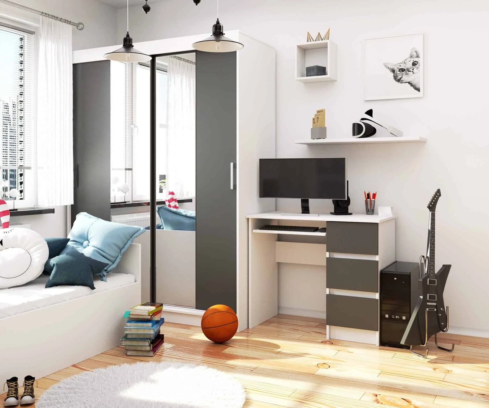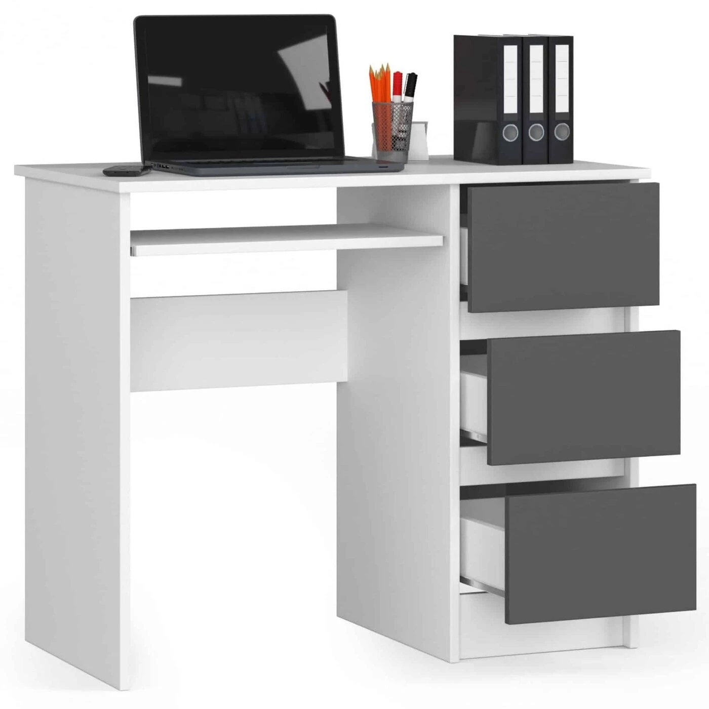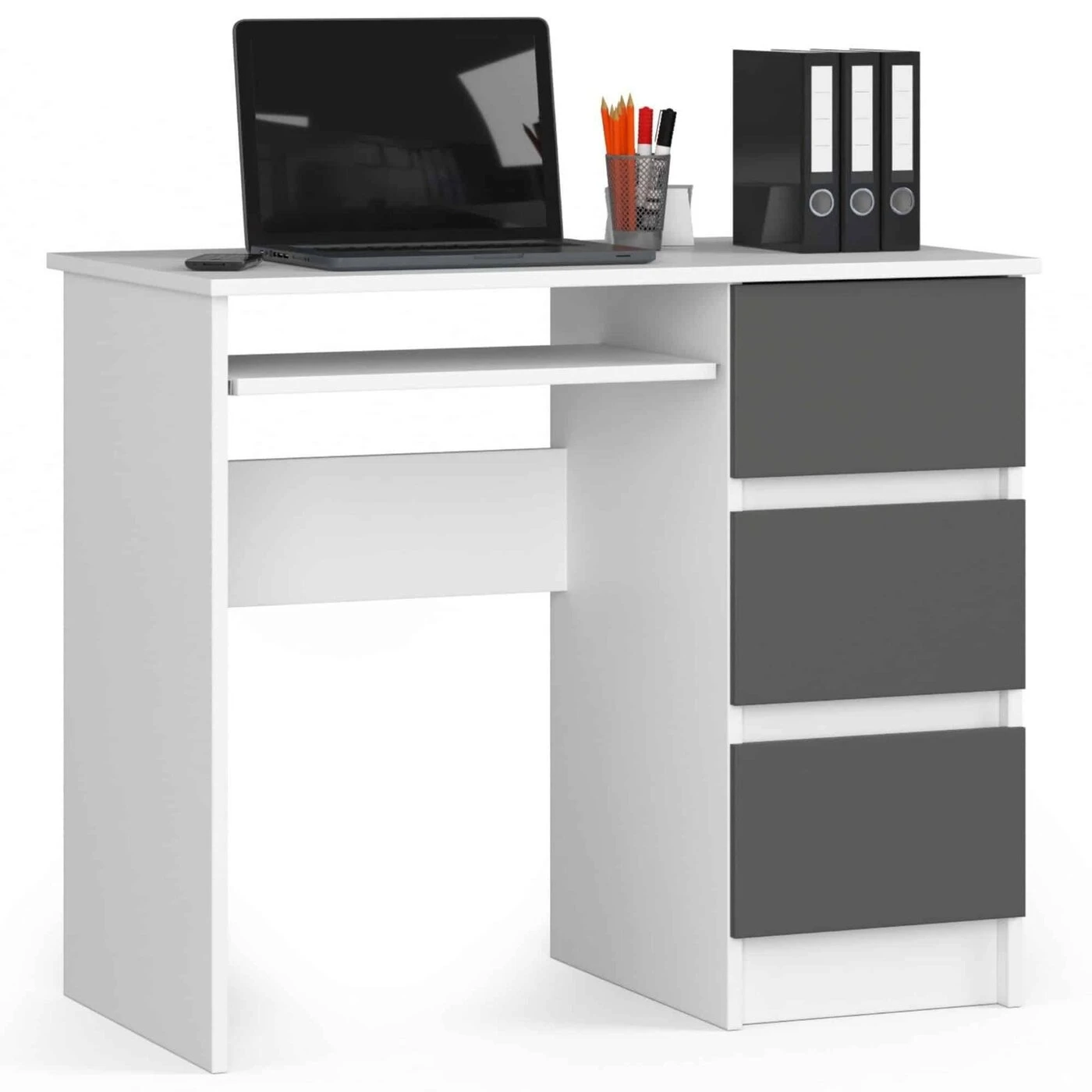 Aprašymas buvo automatiškai išverstas, gali pasitaikyti klaidų. Rašomasis stalas iš laminuotos plokštės – tai gaminys, pasižymintis dideliu atsparumu dilimui, kurio dėka jis puikiai tarnaus ilgą laiką. Dėl universalios išvaizdos jis puikiai atrodo bet kuriame kambaryje. Balduose yra stalviršis, stumdoma lentyna ir trys erdvūs stalčiai, kuriuos galima išdėstyti pagal individualius poreikius Balduose derina balta ir grafito pilka; Gaminys pasižymi minimalistiniu dizainu; Puikiai tiks vaikų, jaunimo, namų darbo kambaryje ar biure; li> Stalčių fasadai pagaminti iš laminuotos plokštės ; Stalčiai ir klaviatūros lentyna juda ant metalinių ritinėlių kreiptuvų; Matomi kraštai padengti ABS apvadu, kuris garantuoja didesnis atsparumas pažeidimams; Gaminys skirtas montuoti savarankiškai; Instrukcija yra komplekte; Baldas turi 24 val. mėnesio garantija. Kompiuterio stalas A -6 90 cm dešinėje yra gaminys, kuriame derinamas funkcionalumas aukšta kokybė ir nesenstantis dizainas. Produktas gali būti laisvai derinamas su kitais tos pačios kolekcijos įrangos elementais. Baltos / grafito pilkos spalvos kompiuterių stalai puikiai atrodys tiek klasikinio stiliaus interjere, tiek modernioje kompozicijoje. Lengva naudoti ir palaikyti švarą, jis neabejotinai pateisins klientų lūkesčius, kurie iš pasirinktų baldų tikisi praktinio naudojimo, paprastumo ir elegancijos.