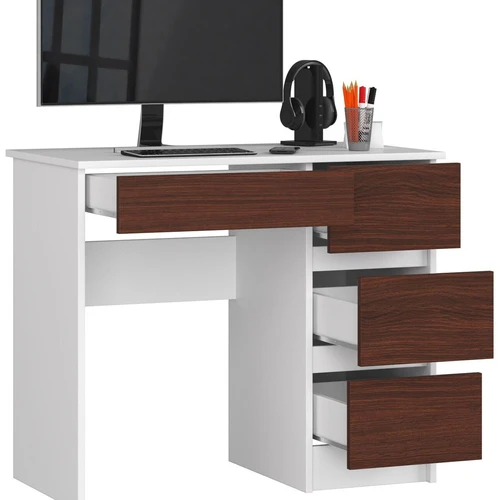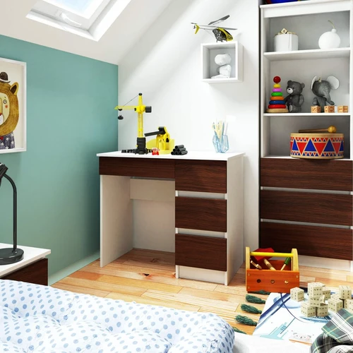 Aprašymas buvo automatiškai išverstas, gali pasitaikyti klaidų. Kompiuterio stalas A-7 yra nedidelis baldas, kurį galima naudoti mažoje patalpoje – biure ar svetainėje. Jis veiks, pavyzdžiui, namų biure arba vaikų / jaunimo kambaryje. Pristatytame gaminyje dera dvi kontrastingos, bet puikiai viena kitą papildančios spalvos –, tamsiai rudas ir balta. Jį sudaro trys stalčiai bet kokiam išdėstymui. Paprastas savo forma, bet itin funkcionalus, šį baldą tikrai įvertins žmonės, norintys sukurti kampelį darbui ar studijoms, tačiau neturintys daug vietos. Gaminys pagamintas iš dilimui atsparios laminuotos plokštės; Turi daug vietos bet kokiam išdėstymui; Stalčių fasadai yra pagaminti iš geros kokybės laminuotos plokštės; Stalčiai, kuriuose yra įrengti baldai, juda ant metalinių ritinėlių kreiptuvų; Matomi kraštai, padengti ABS apvadu, užtikrina didesnį atsparumą pažeidimams; Rašomasis stalas yra baldas, skirtas montuoti savarankiškai; Montavimo instrukcijos pridedamos; Gaminio garantija yra 24 mėnesiai. ul> Ant stalo galite įdėti kitus įrangos elementus, pvz. kaip knygų spinta, spinta ar rašomasis stalas, kurių dėka bus galima sukurti funkcionalų, nesenstantį kambarį vaikui, jaunimui ar namų biurui. Kolekcijos balduose dera tvirta struktūra, universalus dizainas, meistriškumas, dėmesys detalėms ir paprastas kasdienis naudojimas.