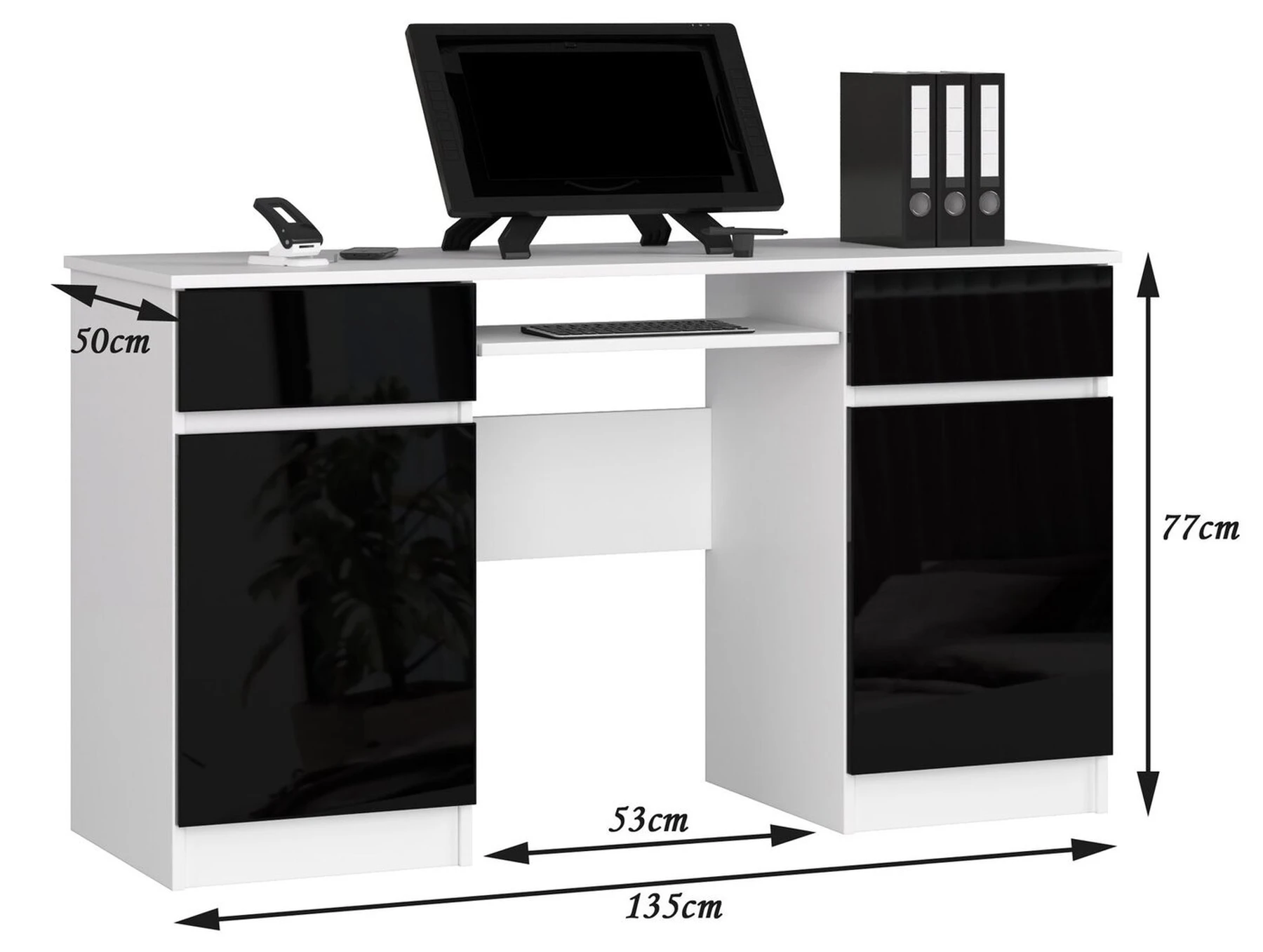 Aprašymas buvo automatiškai išverstas, gali pasitaikyti klaidų. - Rašomasis stalas iš dilimui atsparios laminuotos plokštės - Yra daug vietos bet kokiam išdėstymui - Stalčių ir durų fasadai pagaminta iš laminuotos plokštės - Stalčiai ir klaviatūros lentyna juda ant metalinių ritinėlių kreiptuvų - Matomi kraštai padengti ABS briauna, padidintu atsparumu pažeidimams - Rašomasis stalas savarankiškam surinkimui - Pristatymo instrukcijos - Gamintojo garantija 24 mėn.