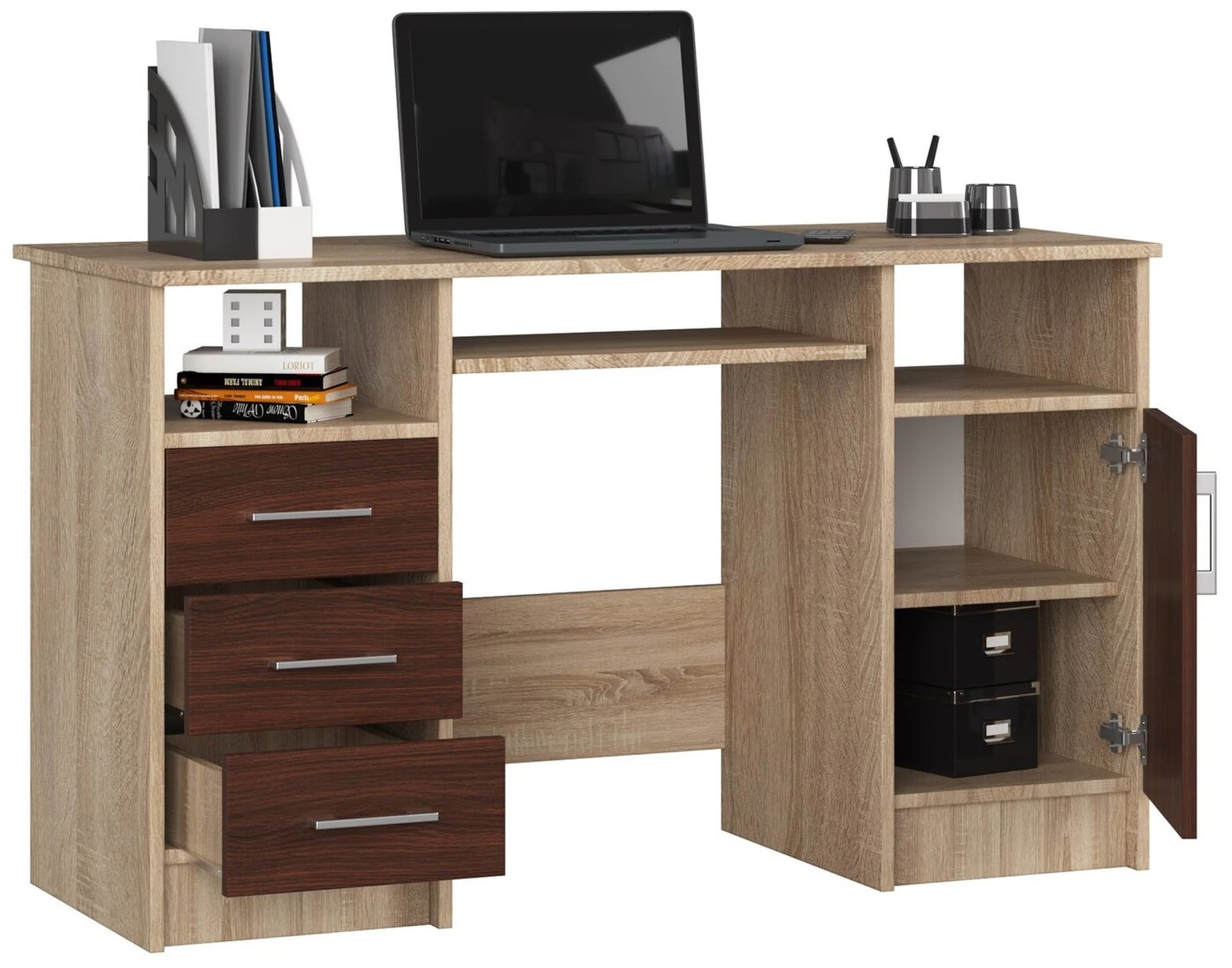 Aprašymas buvo automatiškai išverstas, gali pasitaikyti klaidų. 124 cm ANA kompiuterio stalas yra elegancija, funkcionalumas ir tvirtumas viename. Dėl klasikinio sonomos ir, tamsiai rudas spalvų derinio juos lengvai priderinsime prie bet kokio interjero. ANA rašomasis stalas tinka biuro patalpoms ir biurams. Jis taip pat gerai veikia paauglio kambaryje. Stalviršyje yra daug vietos, todėl ant jo galima laisvai padėti monitorių ir dokumentus, o klaviatūrą galima laisvai padėti ant ištraukiamos lentynos. Rašomasis stalas turi daug vietos bet kokiam išdėstymui - spintelė su lentyna ir trimis stalčiais. Rašomasis stalas pagamintas iš lengvai prižiūrimos ir trinčiai atsparios laminuotos plokštės. Rašomasis stalas yra praktiškos ir tvirtos konstrukcijos. Madingos ir praktiškos spalvos suteikia daug išdėstymo galimybių. Rašomasis stalas pagamintas iš dilimui atsparios laminuotos plokštės. Stalo kraštai tvirtinami ABS lukštu . 2 nišos, 3 stalčiai ir spintelė su lentyna suteikia daug erdvės plėtrai. Klaviatūros lentyna ir stalčiai juda ant metalinių ritinėlių kreiptuvų. Garantija 24 mėn. Pagaminta Lenkijoje. 123 cm ANA kompiuterių stalai skirti montuoti savarankiškai. Komplekte yra surinkimo instrukcija ir įrankiai, kurie padės surinkti baldus. Pasirūpinę rašomuoju stalu, prailginsime jo tarnavimo laiką. Rekomenduojame naudoti baldams prižiūrėti skirtas ploviklius, o valymui ir poliravimui – minkštą kempinę ar šluostę. Taip pat įsitikinkite, kad stalas visada yra ant sauso paviršiaus.