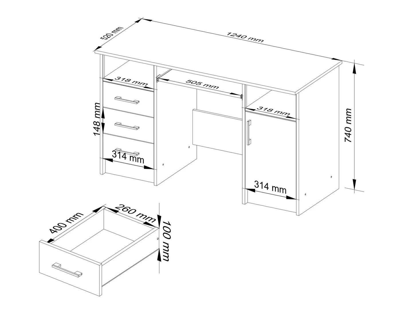 Aprašymas buvo automatiškai išverstas, gali pasitaikyti klaidų. Į ką atsižvelgti renkantis tobulą rašomąjį stalą savo namų darbo kabinetui ar paauglio kambariui? Kaip išsirinkti gaminį, kuriame derinama gera kokybė, praktiškas naudojimas ir universalus dizainas? Verta siekti klasikinių nesenstančios spalvos pasiūlymų. Viena iš tokių spalvų neabejotinai yra balta, kuri visada buvo labai populiari tarp klientų. Pristatome jums gražų nedidelį baltą rašomąjį stalą, kuris puikiai tiks bet kuriame kambaryje. Tai modelis, kuris patenkins klasikinio interjero mėgėjus, kurie darbui ar studijoms renkasi vienspalvius, laisvai stovinčius rašomuosius stalus. Mūsų rekomenduojamas modelis susideda iš erdvių stalčių, dviejų atvirų spintelių ir uždaros spintelės. Jame taip pat yra stumdoma klaviatūros lentyna. Erdvę galima išplėtoti pagal savo poreikius. Norėdami sukurti tobulą visumą, klientai gali pasirinkti kitus tokio paties stiliaus biuro interjero elementus. - stalas pagaminta iš trinčiai atsparios laminuotos plokštės - Yra daug vietos bet kokiam išdėstymui - Durelių viduje yra viena lentyna - Stalčių ir durų fasadai pagaminti iš laminuotos plokštės - Stalčiai ir klaviatūros lentyna juda ant metalinių ritinėlių kreiptuvų - Matomi kraštai padengti ABS briauna, padidintu atsparumu pažeidimams - Sidabrinės spalvos stalčių ir durų rankenos - Rašomasis stalas, skirtas savarankiškai surinkti br /> – Pridedamas vadovas – Gamintojo garantija 24 mėn.