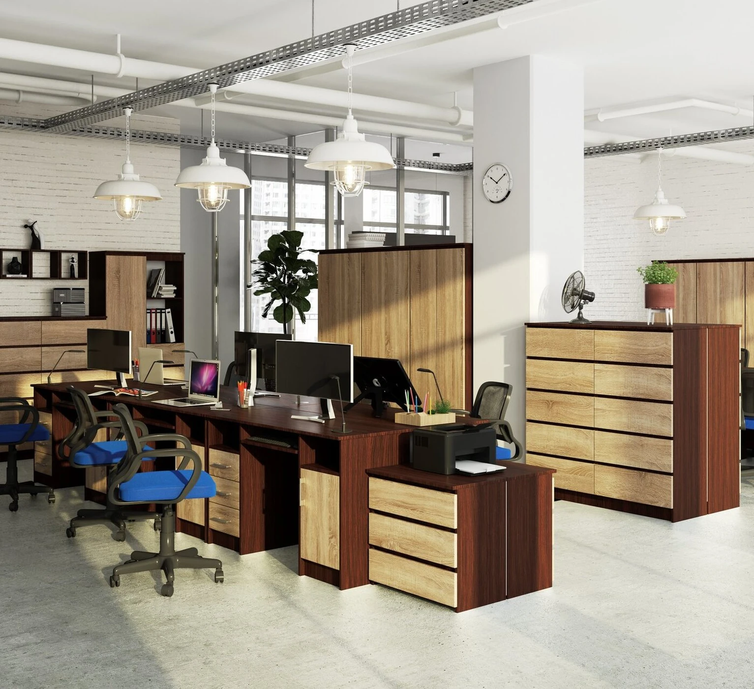 Aprašymas buvo automatiškai išverstas, gali pasitaikyti klaidų. ANA kompiuterio stalas pagamintas iš trinčiai atsparios, laminuotos dviejų spalvų baldinės plokštės. Baldo korpusas yra, tamsiai rudas medienos stiliaus, o stalčių fasadai ir durelės pagaminti iš kontrastingo, ąžuolo spalvos ąžuolo laminato. Tamsus rašomojo stalo viršus palaikomas dviejų spintelių, sukuriančių darbo erdvę centre. Centrinėje dalyje, po stalviršiu, tinkamame aukštyje yra ištraukiama lentynėlė klaviatūrai, o žemiau – ne per masyvi galinė panelė, kuri suteikia baldui lengvumo. Kairėje pusėje yra trys vienas virš kito išdėstyti stalčiai, o dešinėje - spintelė su durelėmis su 2 lentynomis. Virš spintelių, po stalviršiu, yra viena atvira lentyna. ANA stalo pranašumai yra šie: patogūs baldų išmatavimai (74 cm aukščio, 124 cm pločio ir 52 cm gylio); įvairios sandėliavimo vietos (stalčiai, uždaros spintelės, atviros lentynos) ištraukiamas klaviatūra su ABS plastiku; elegantiškos, modernios stalčių ir spintelių durų rankenos; 24 mėnesių gamintojo garantija. Patogi ANA, tamsiai rudos/ąžuolo spalvos spalvos rašomasis stalas pasižymi išskirtiniu dizainu ir didele sandėliavimo vieta. Puikiai tiks vaikų ir paauglių kambariams, taip pat specialiai darbui skirtuose kambariuose. Jis taip pat gali papildyti svetainės ar miegamojo baldus. Jis taip pat tinka naudoti intymioje biuro erdvėje.